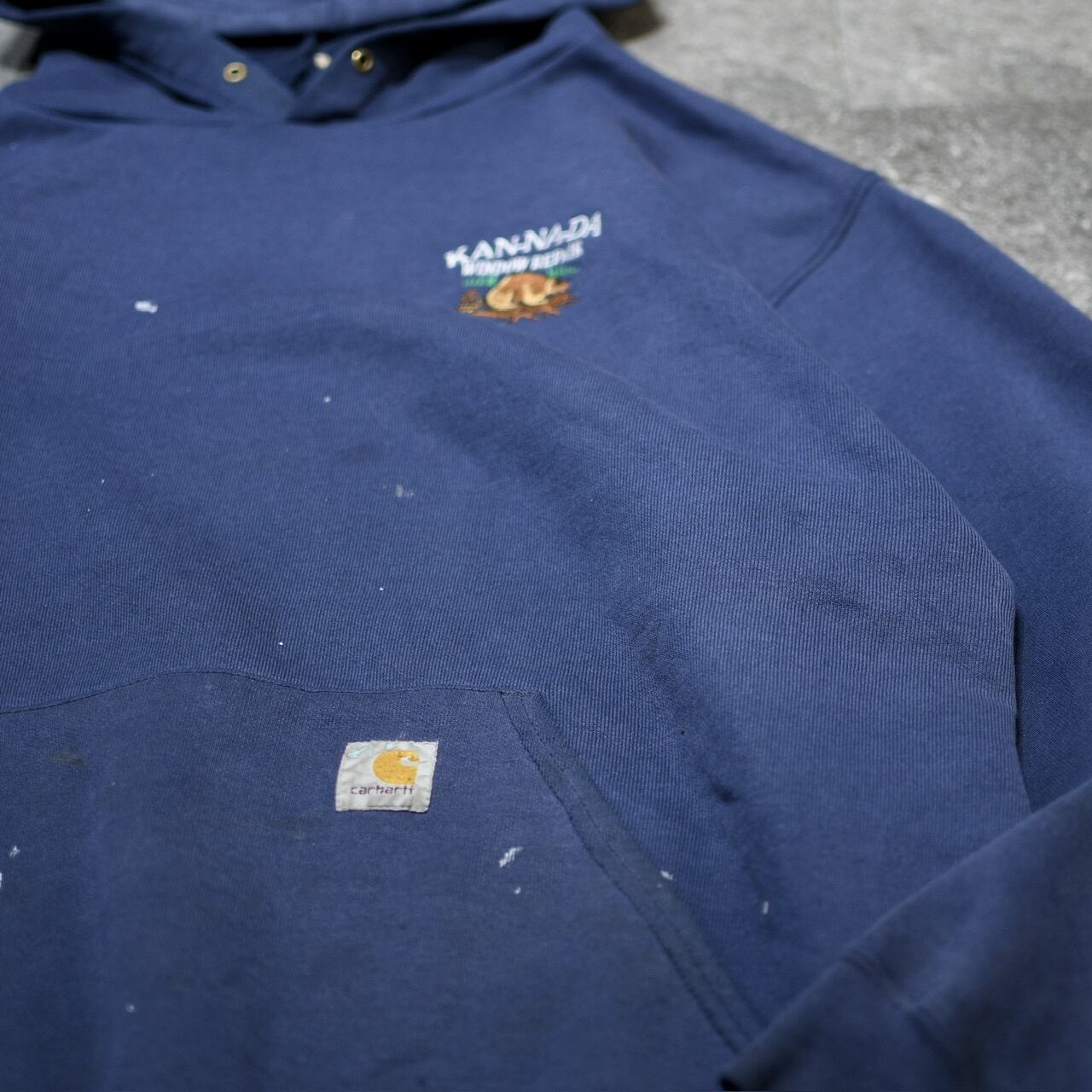 ややフェードした生地に飛び散ったペンキ。