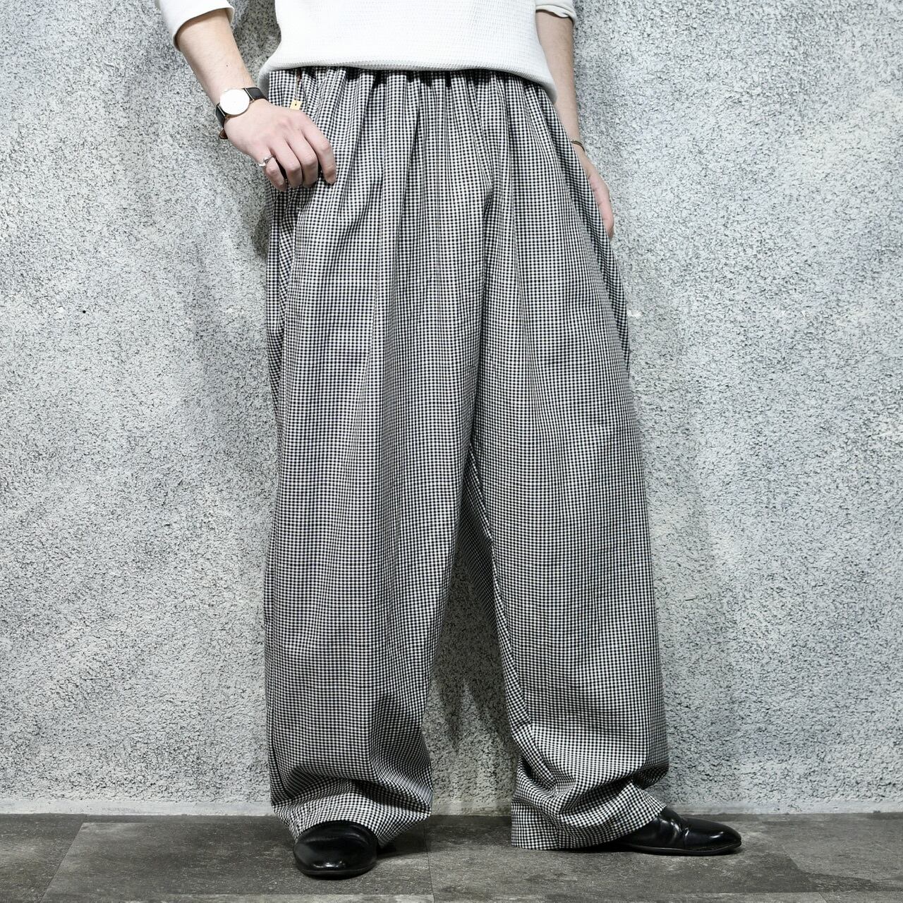 イージーパンツだからこそ許せるウエスト。