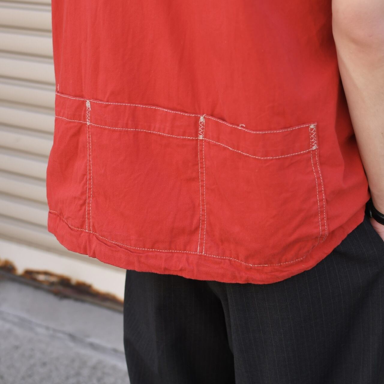 The stitching near the front pockets has a
