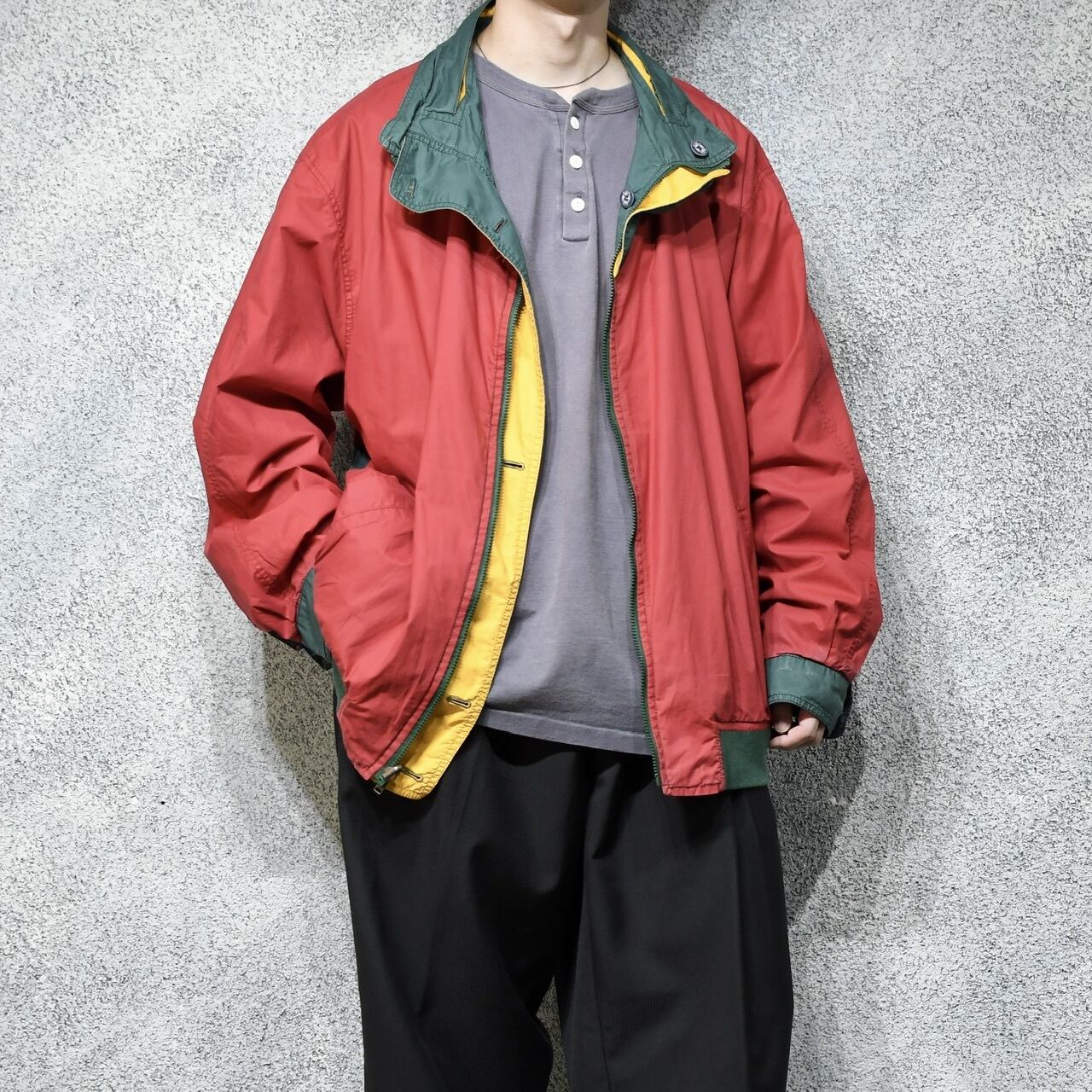 切り替えられたリバーシブルブルゾン。