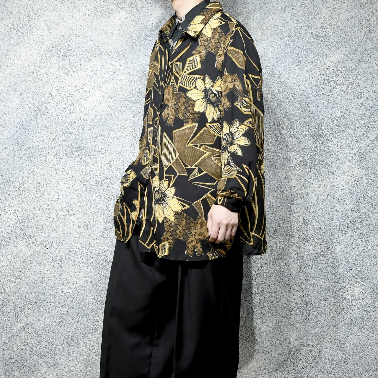 同じく総柄のシャツなんかの上に、