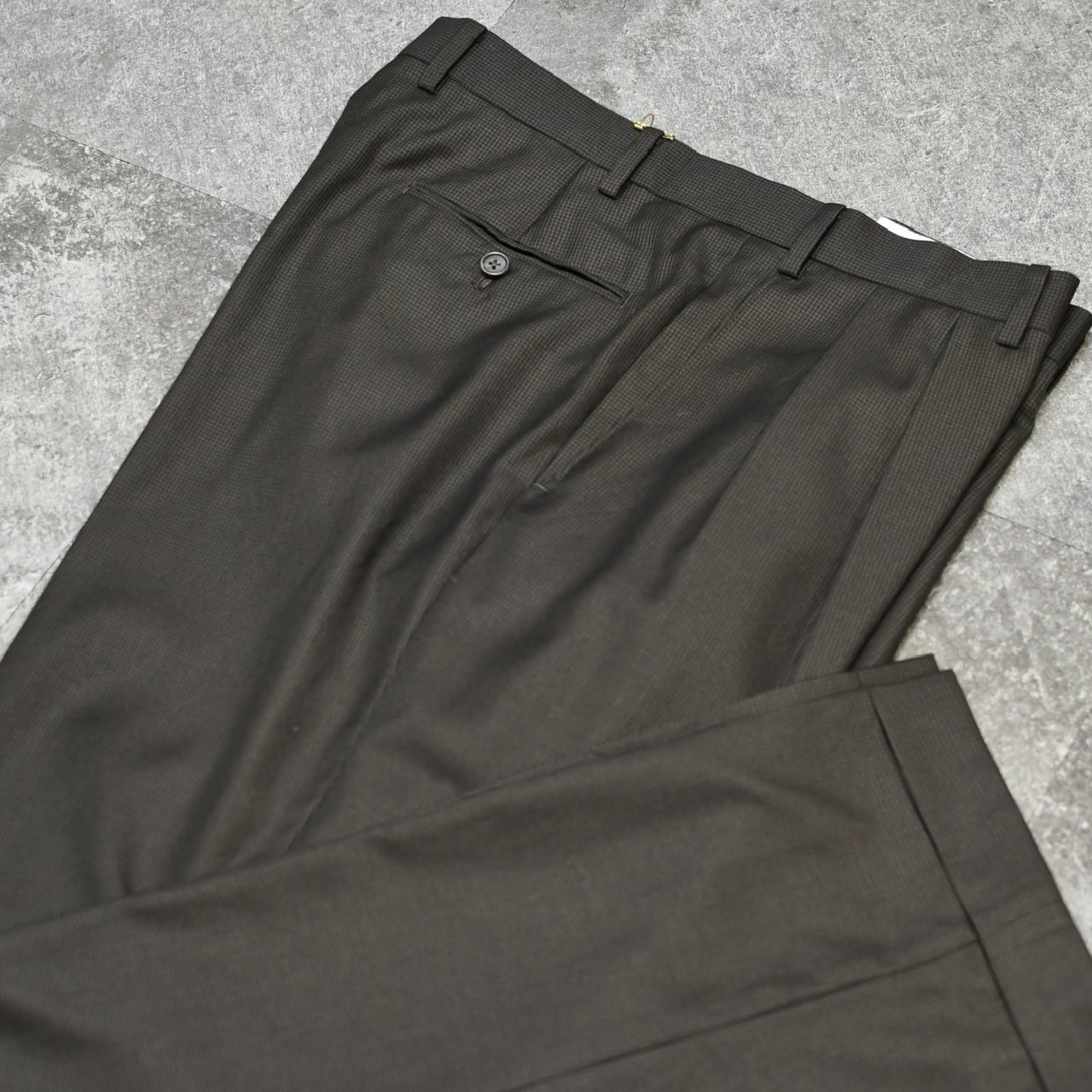 ダークブラウンの生地に千鳥格子柄という