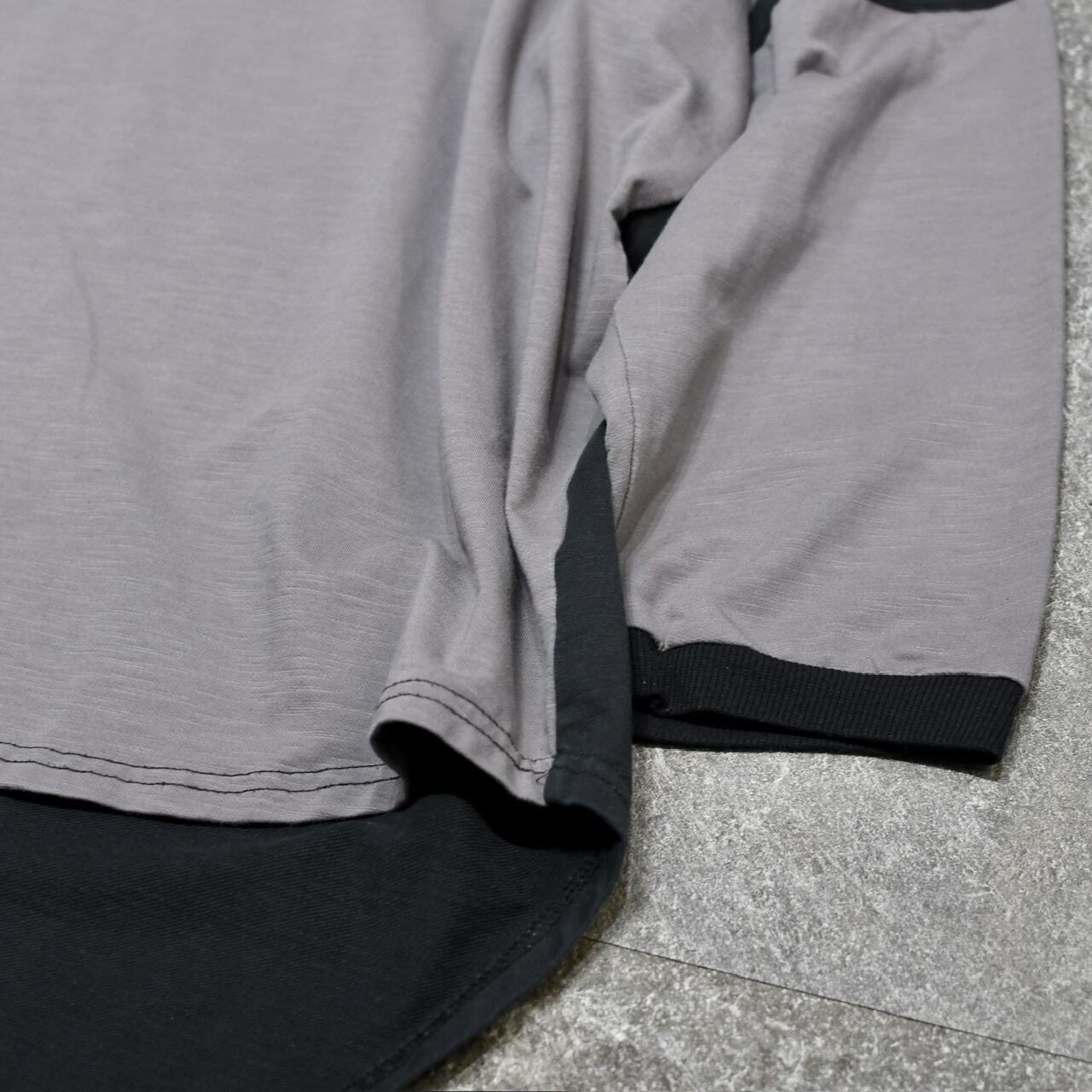 前見頃はジャスト丈、後見頃は長め、切り替えなど