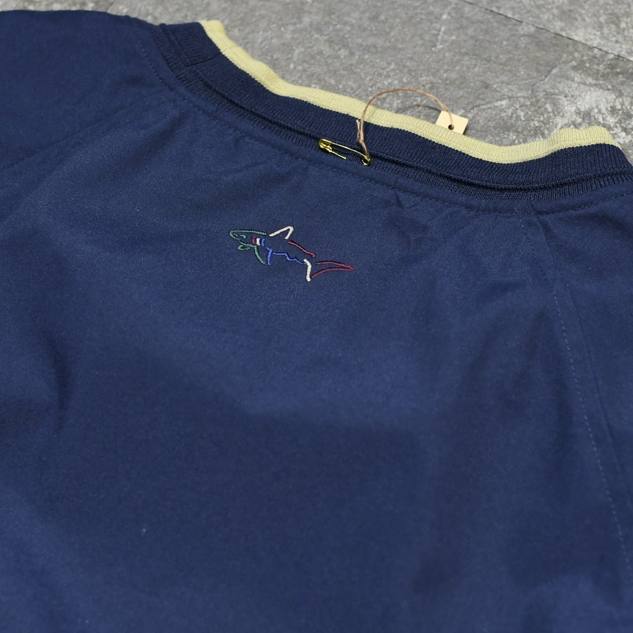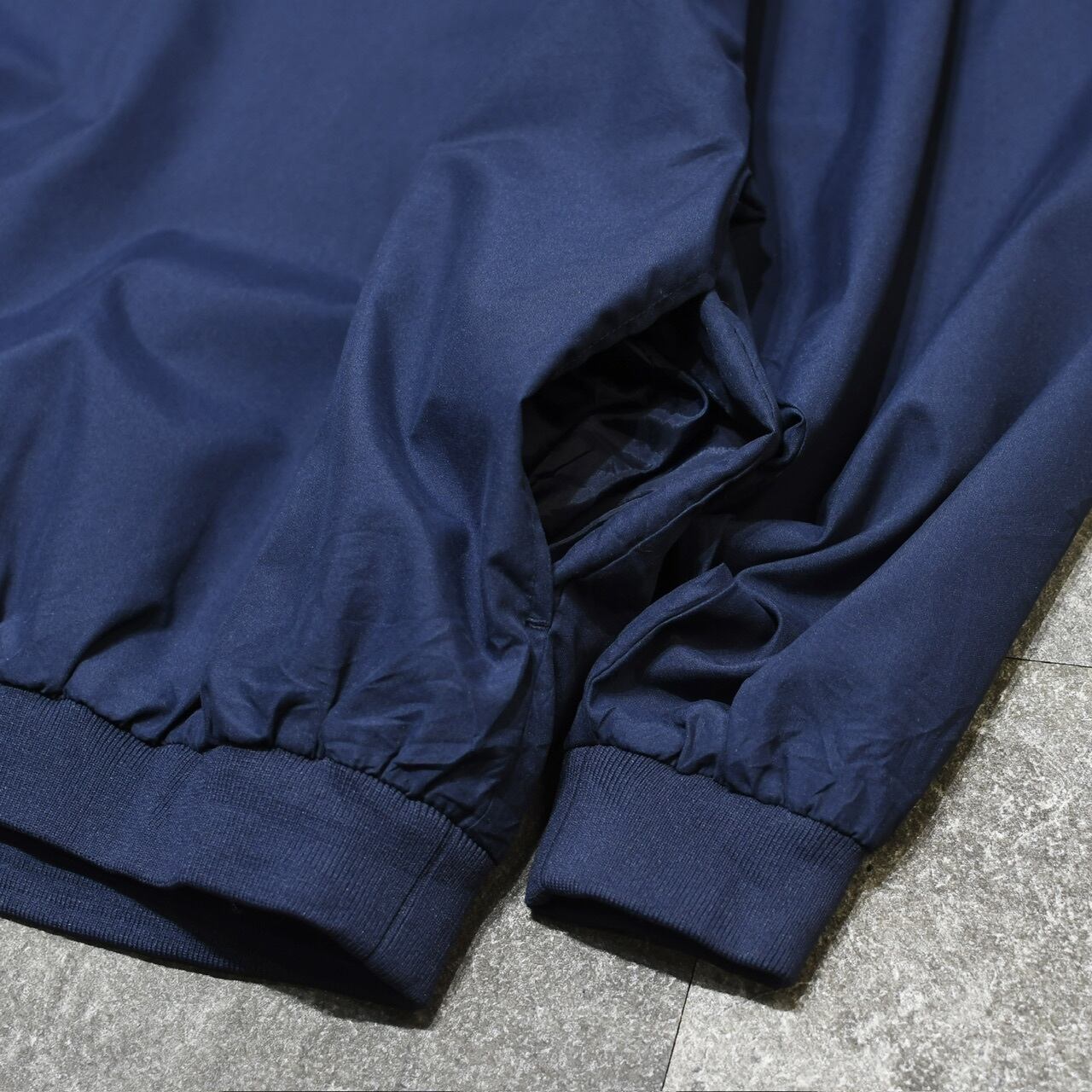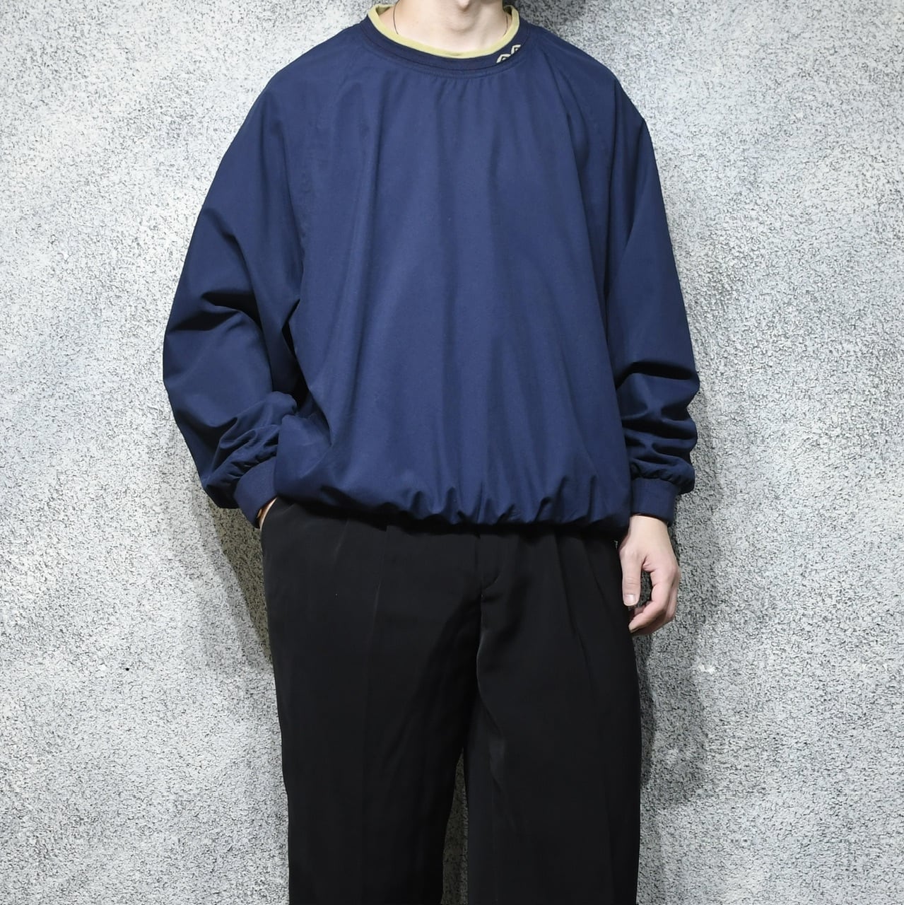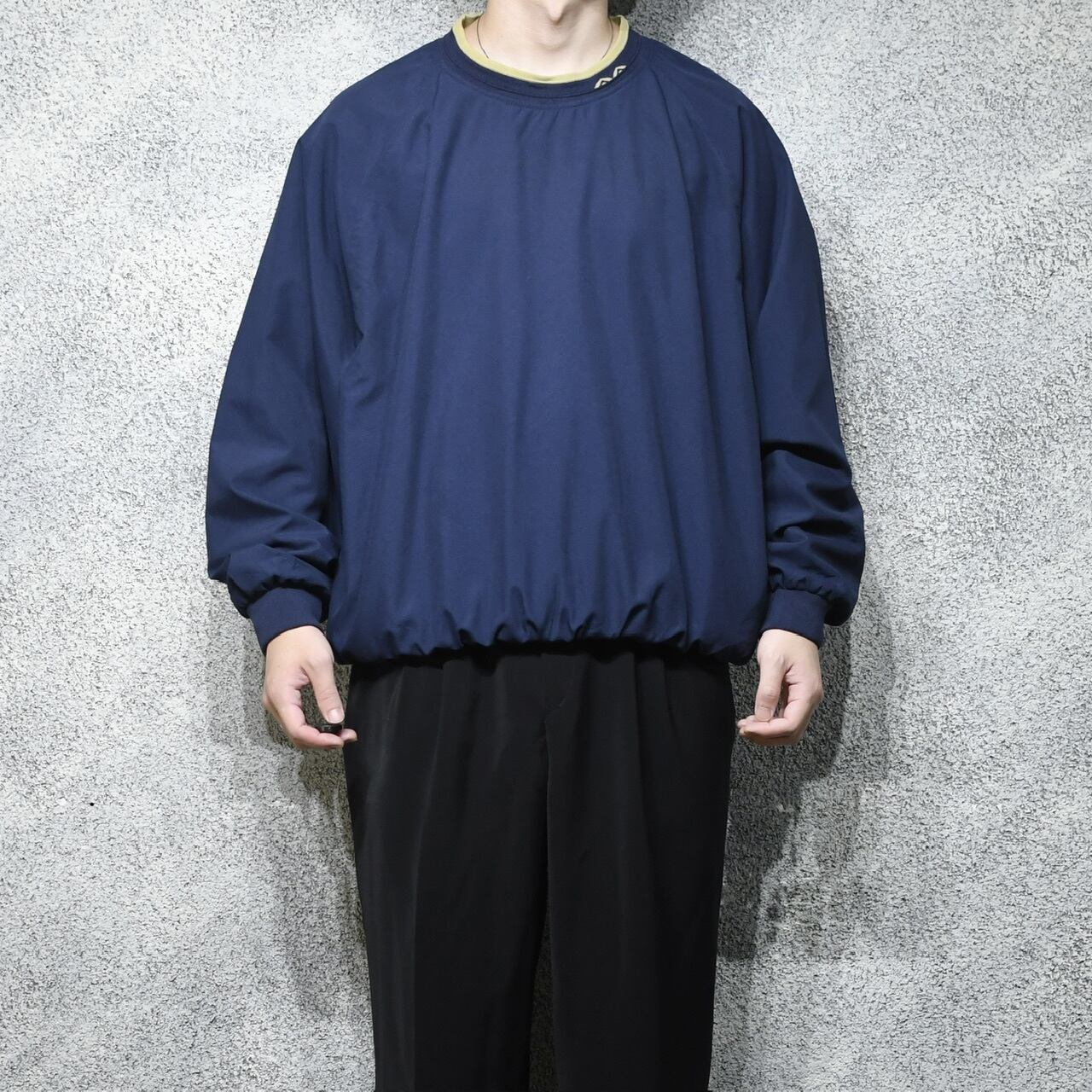 丸首のナイロンプルオーバーで、尚且つ首元のリブや