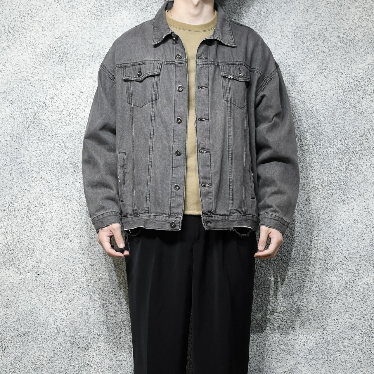 fade boro black denim jacket
