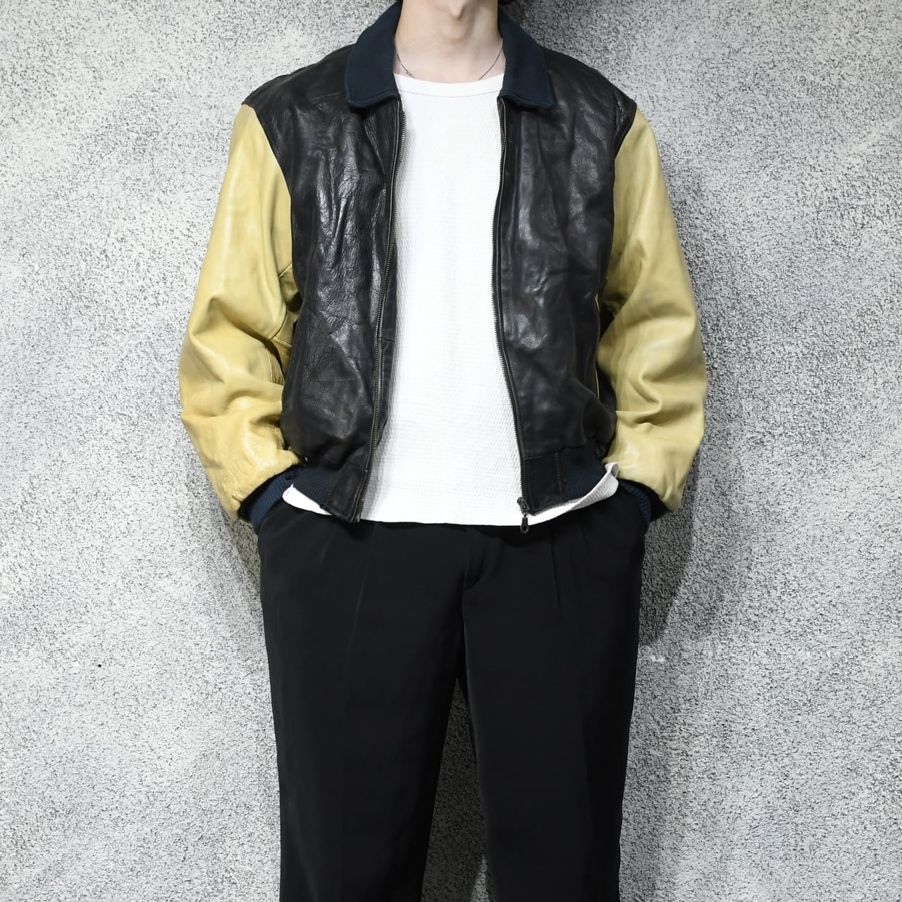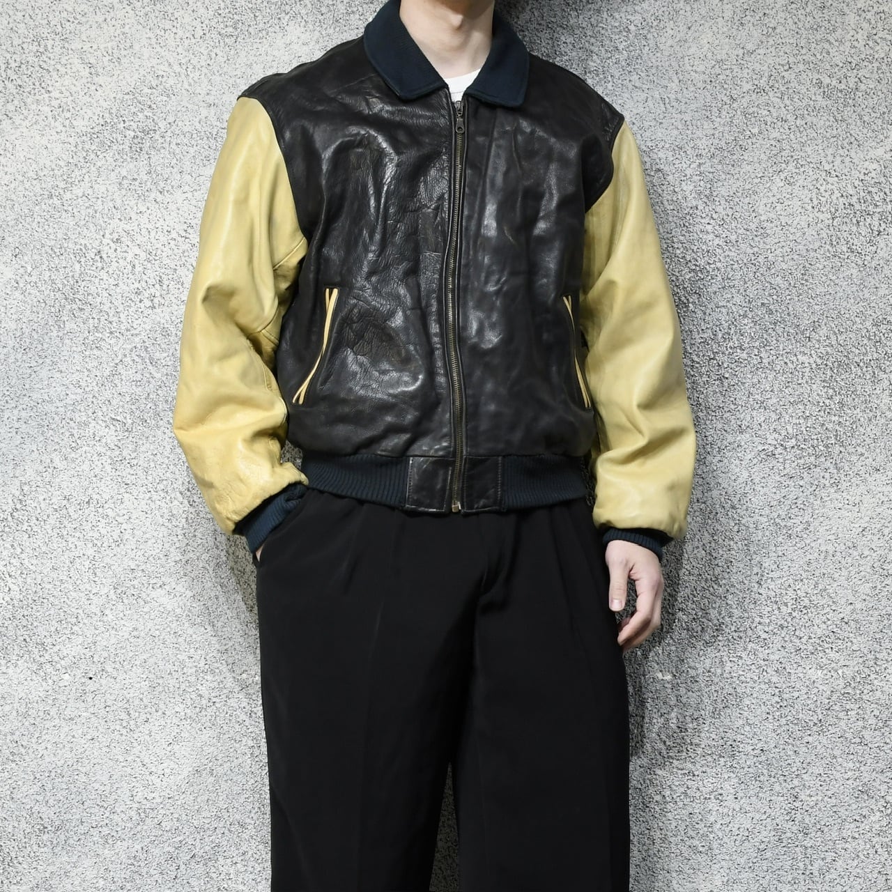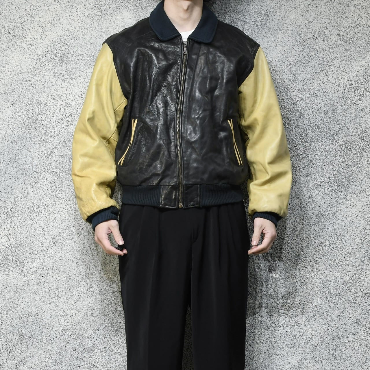 ※レザー特有の擦れや汚れ、アームに汚れ、内ポケットに直し痕あり。