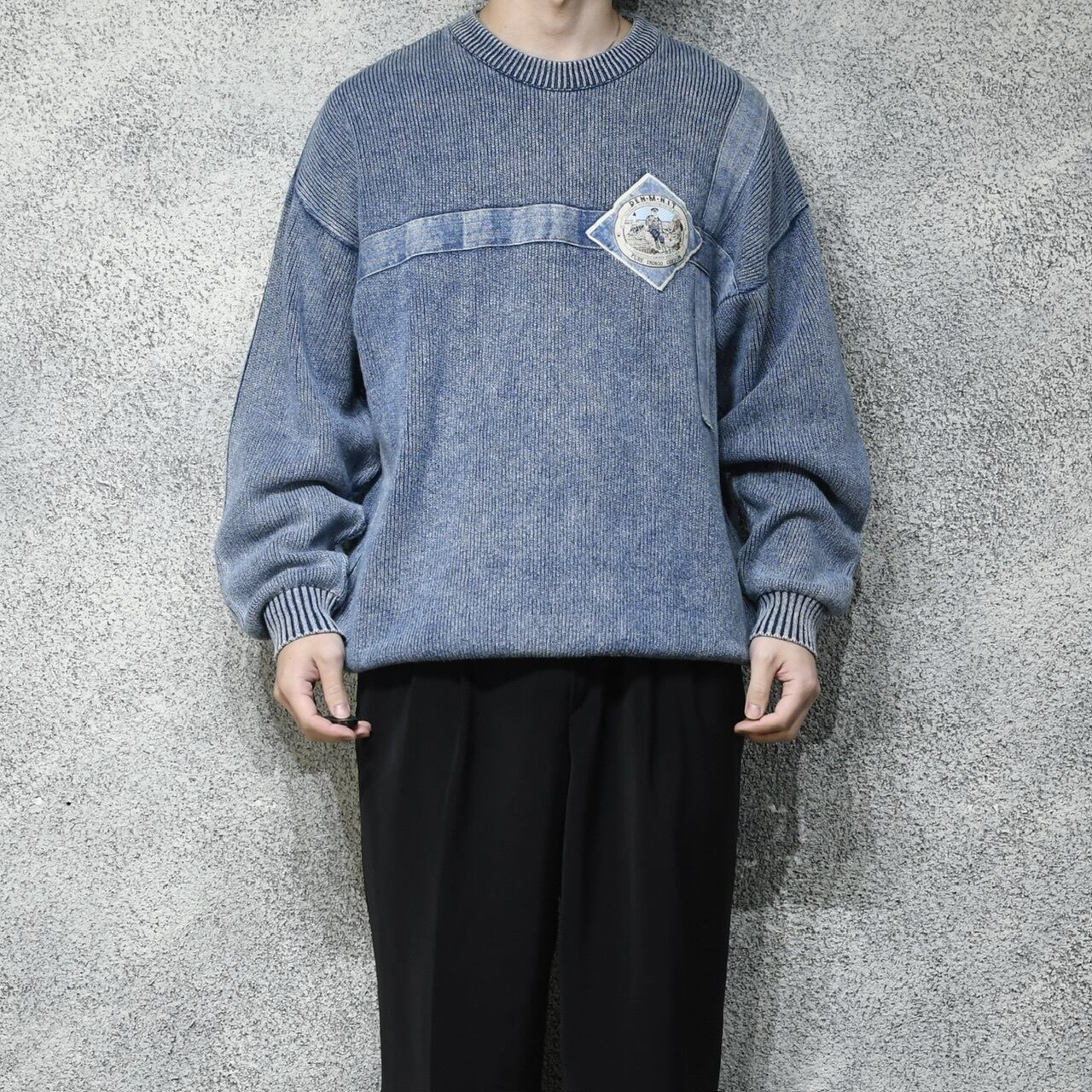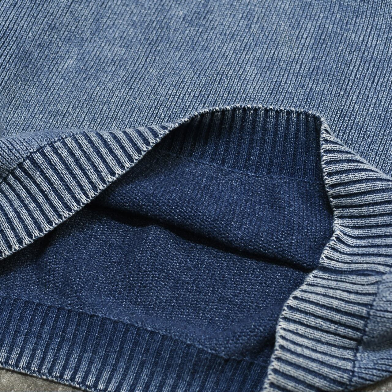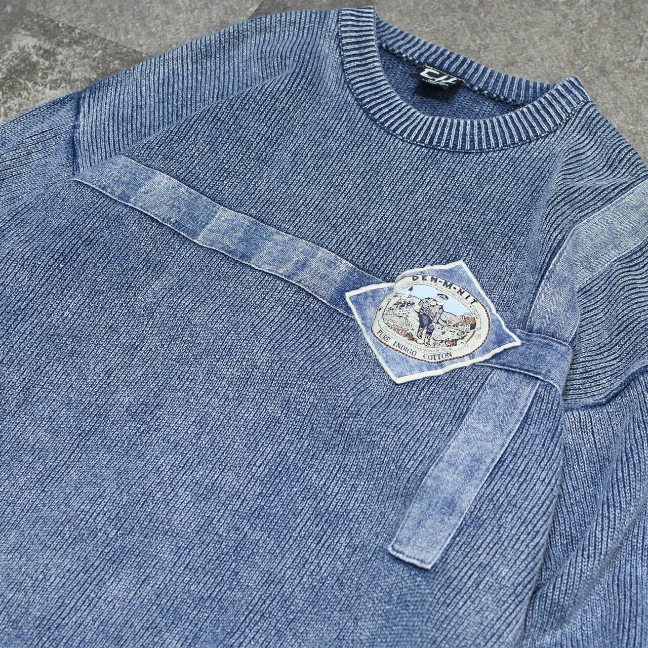 デンマーク製のインディゴ染めコットンニット。