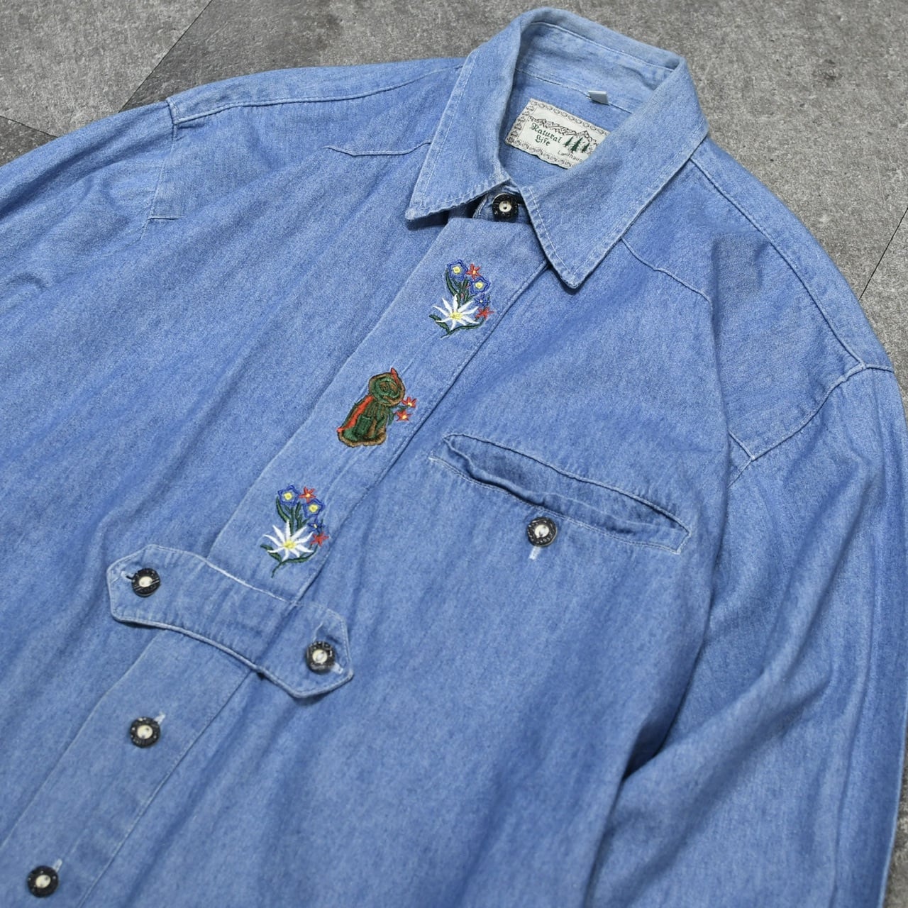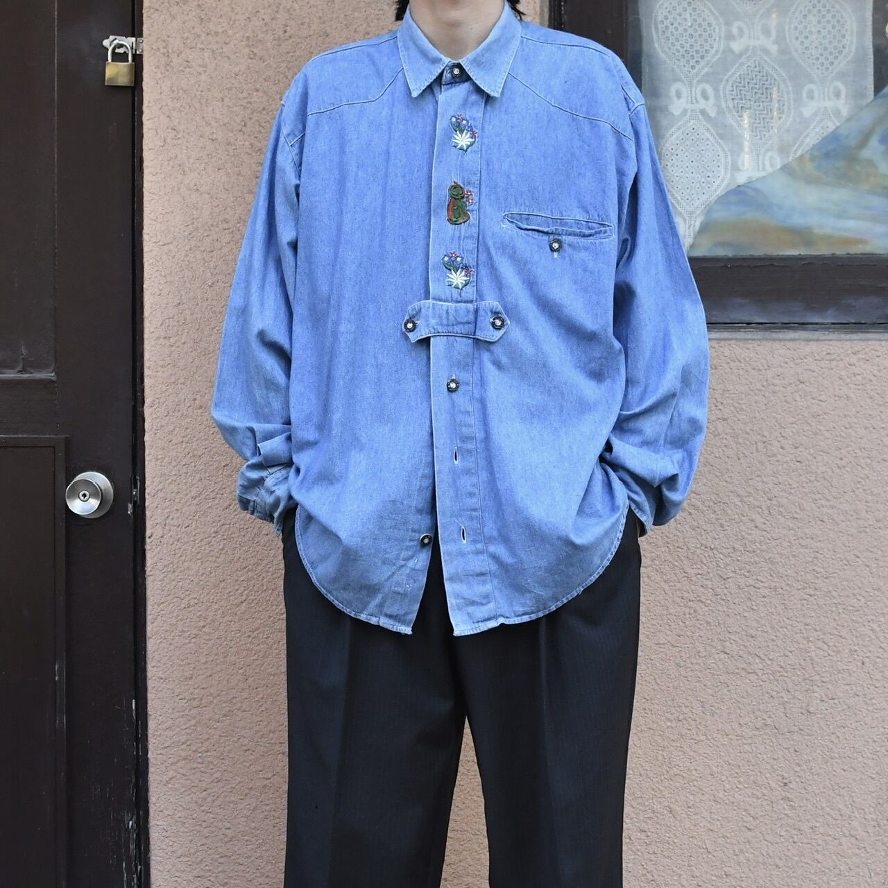 心が踊るデニムのチロリアンシャツ。