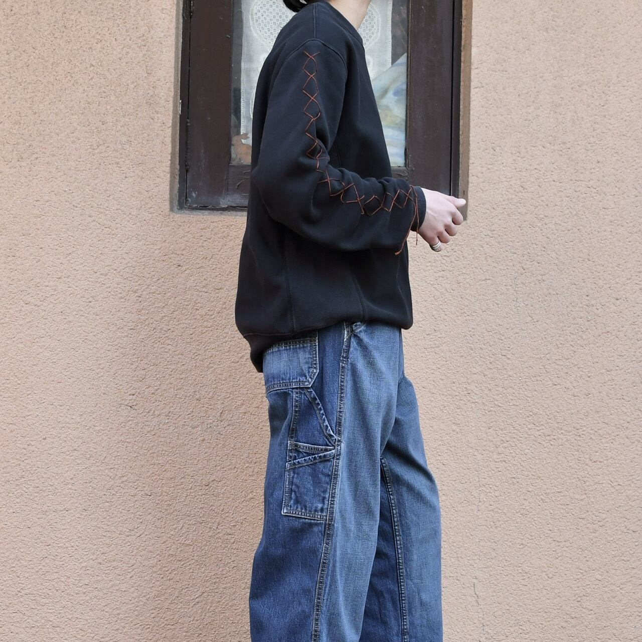さりげなく足元やベスト、小物で刺繍糸の色を