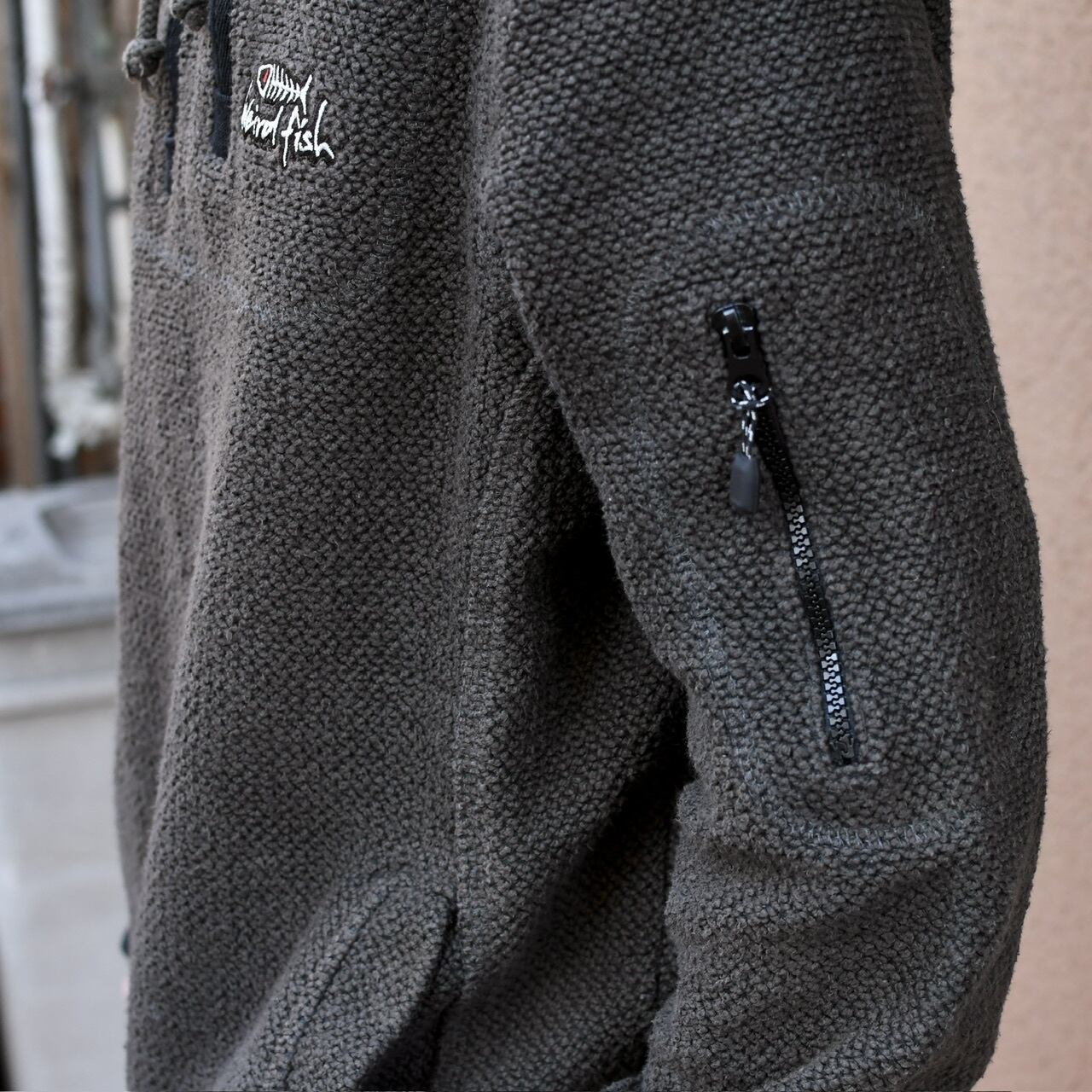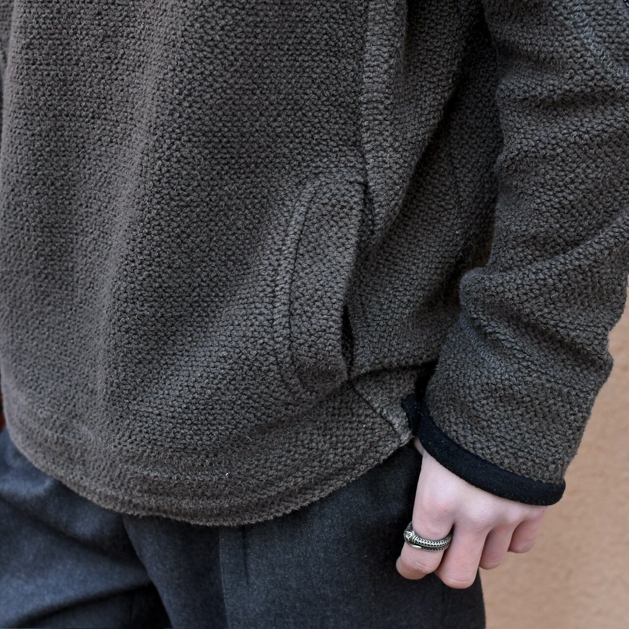 鹿の子生地の凹凸を大きくした様な、独特な生地感に