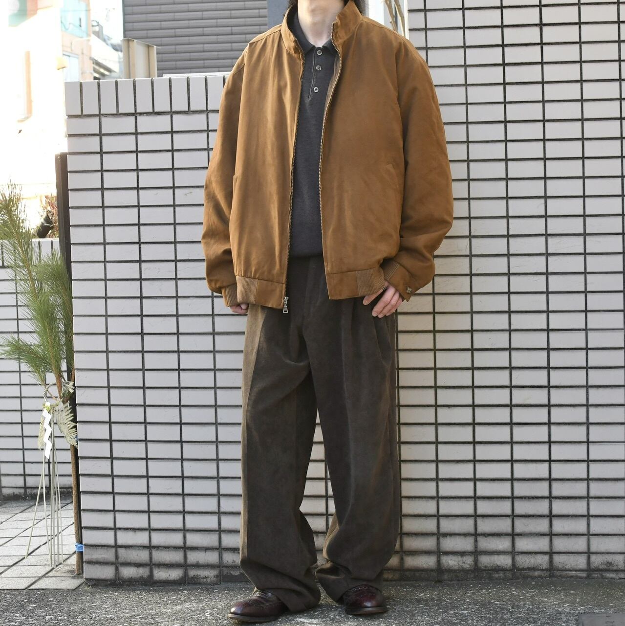 上品な生地にブルゾンタイプという作りから、スラックスなどドレス寄りなパンツから、カジュアルなパンツにまで落とし込めるアイテムです。