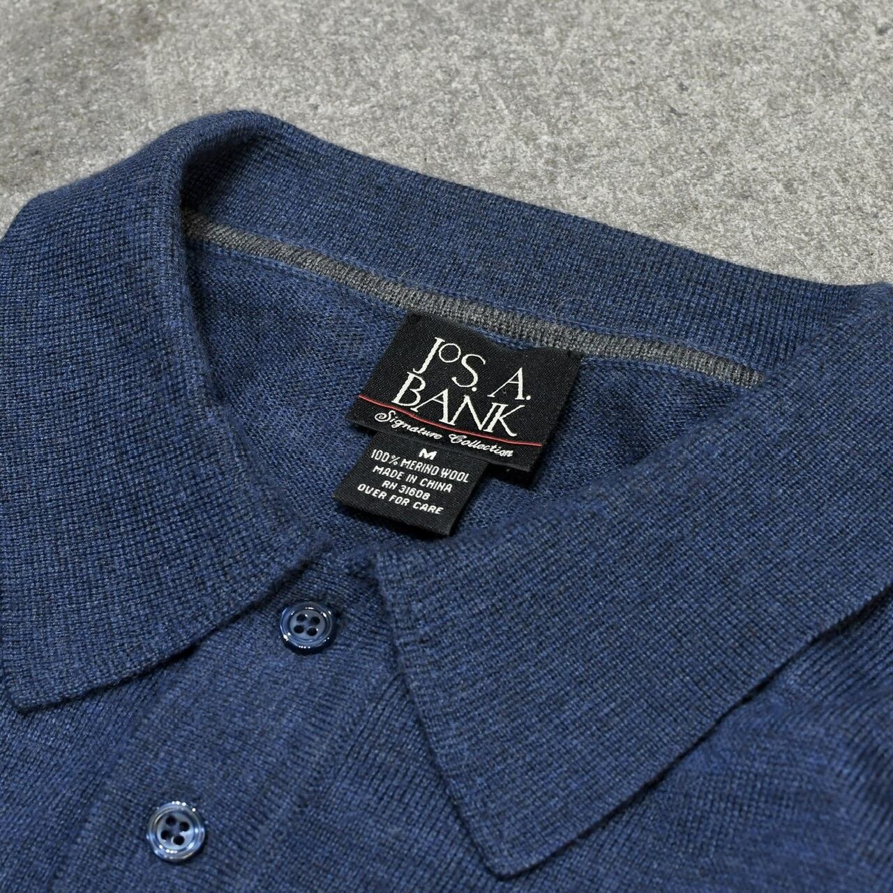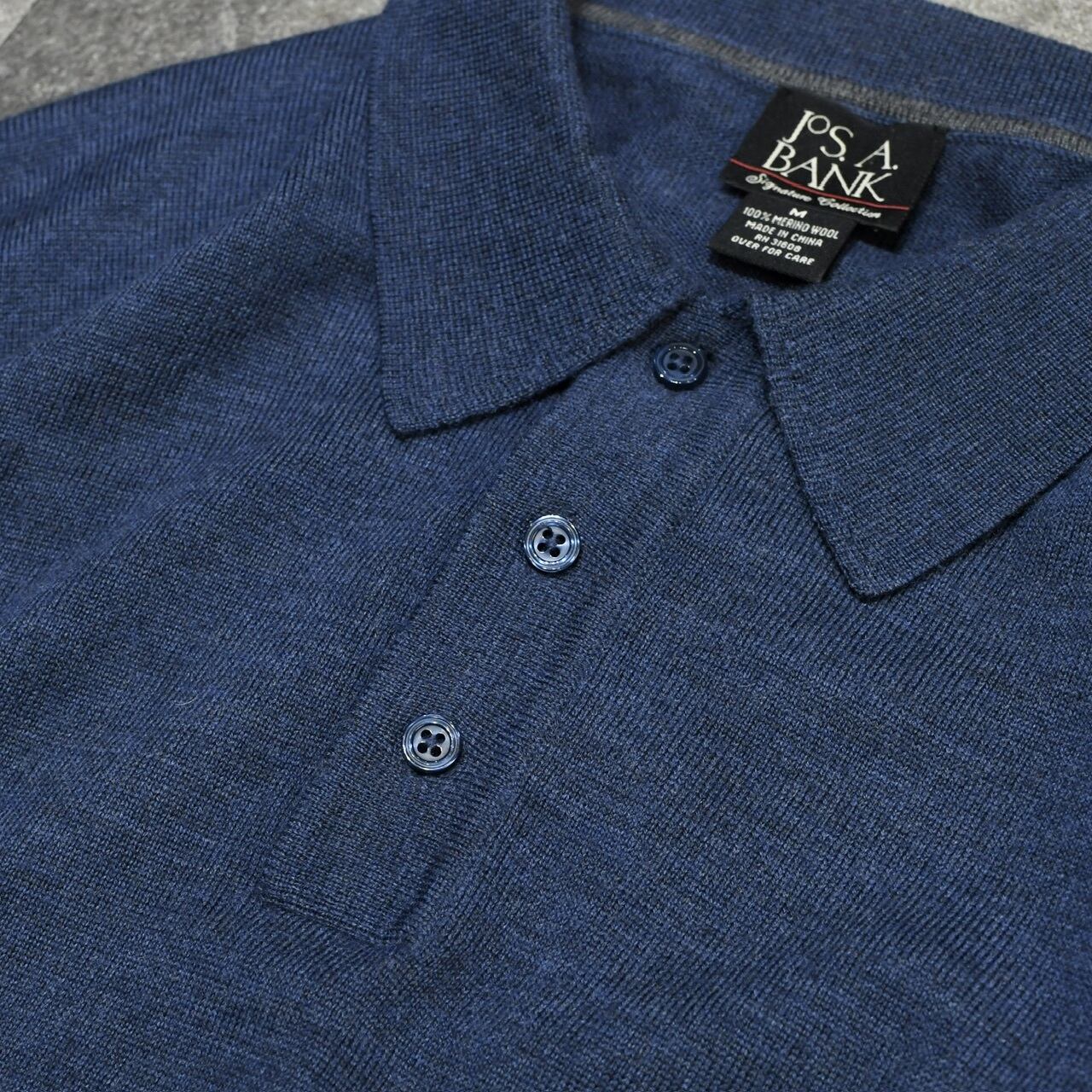 JOS.A.BANK merino wool knit polo blue