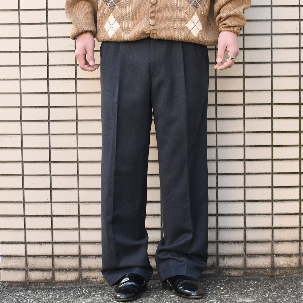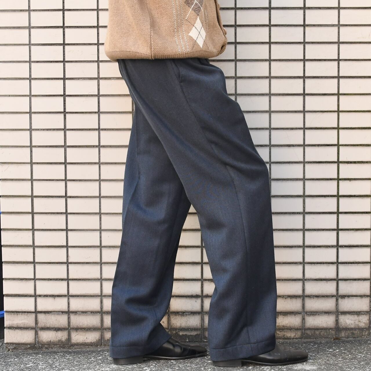 2 tuck wool slacks navy