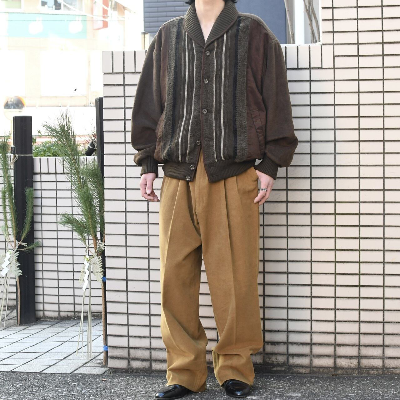 下のボタンをいくつか開けてシルエットを変えて