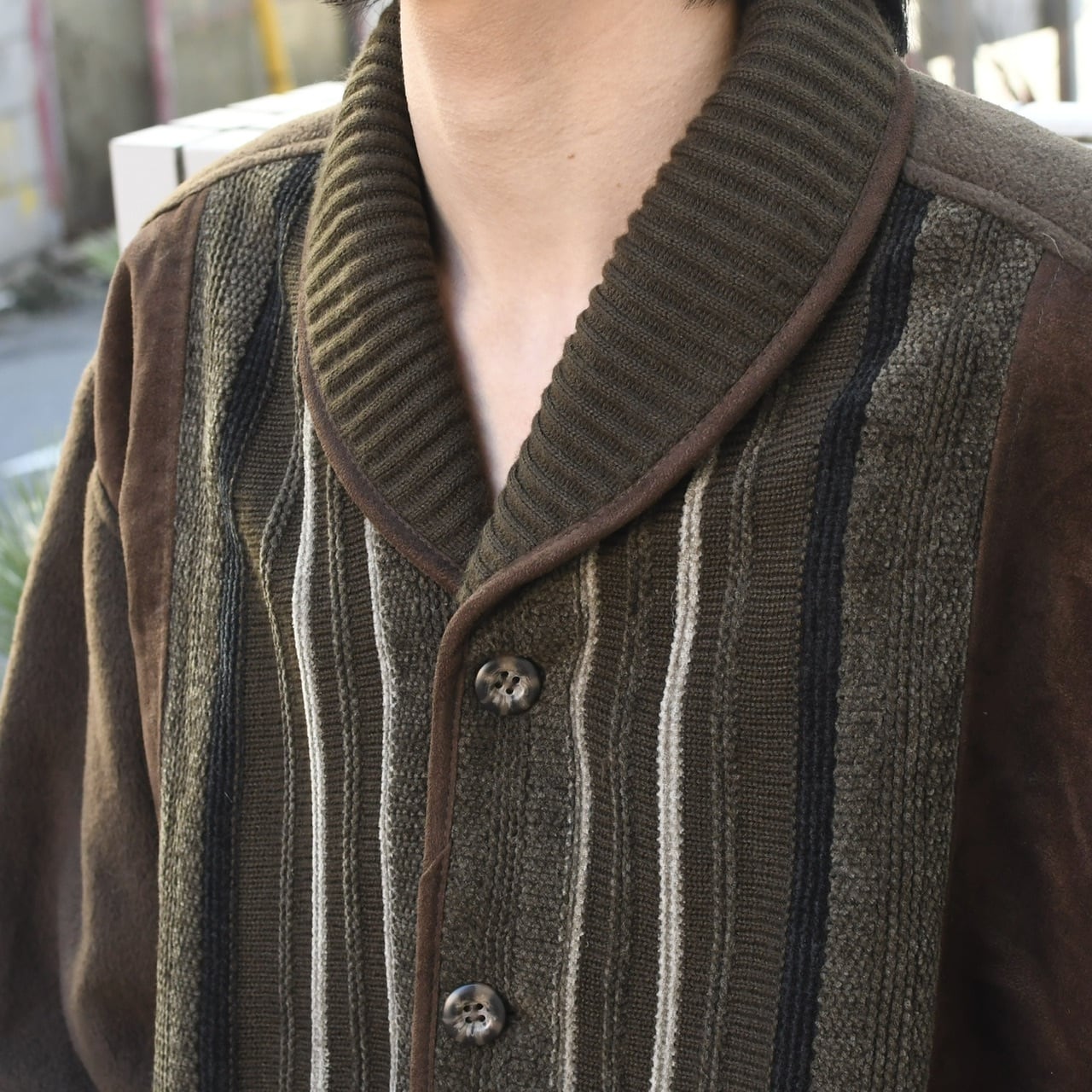 knit × fake suede switching design fleece blouson