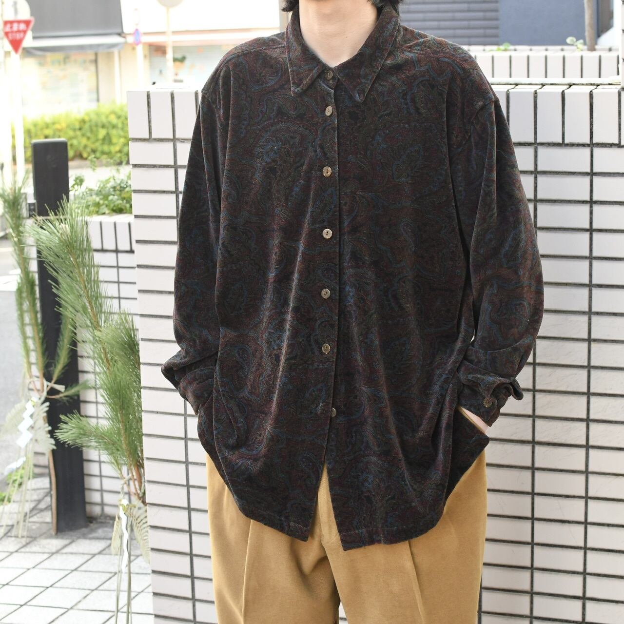 paisley pattern velour shirt