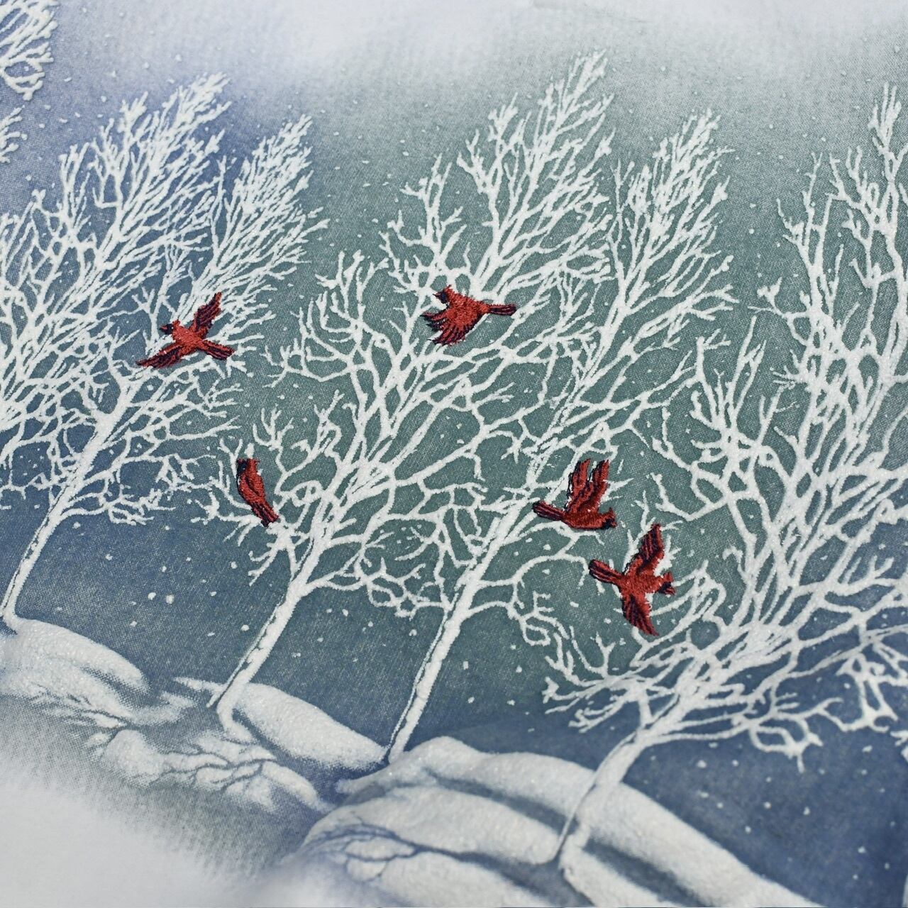 雪景色に5羽の赤い鳥。