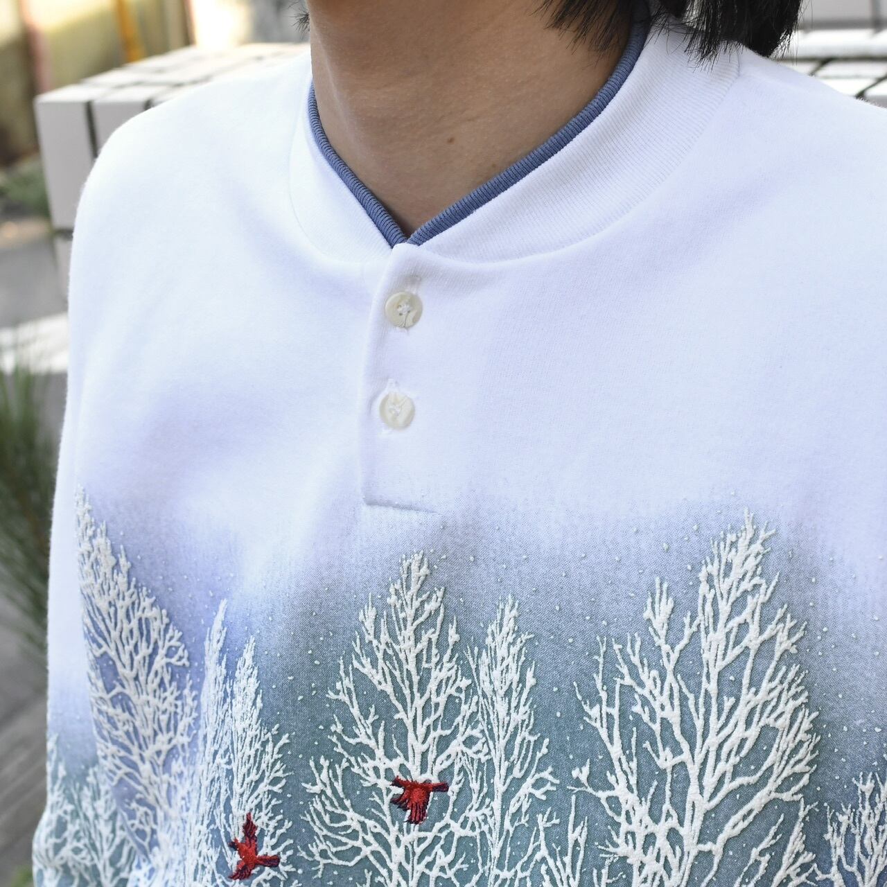 snow bird embroidery henry necksweat