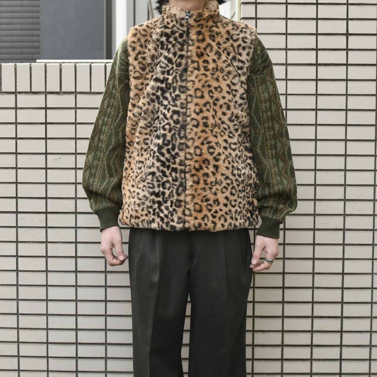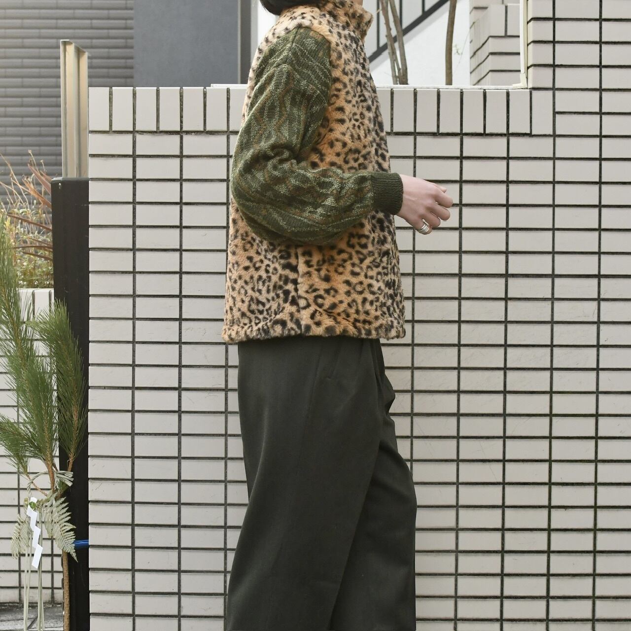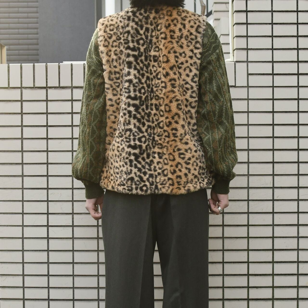スラックスにニット、そしてこんなレオパード柄の