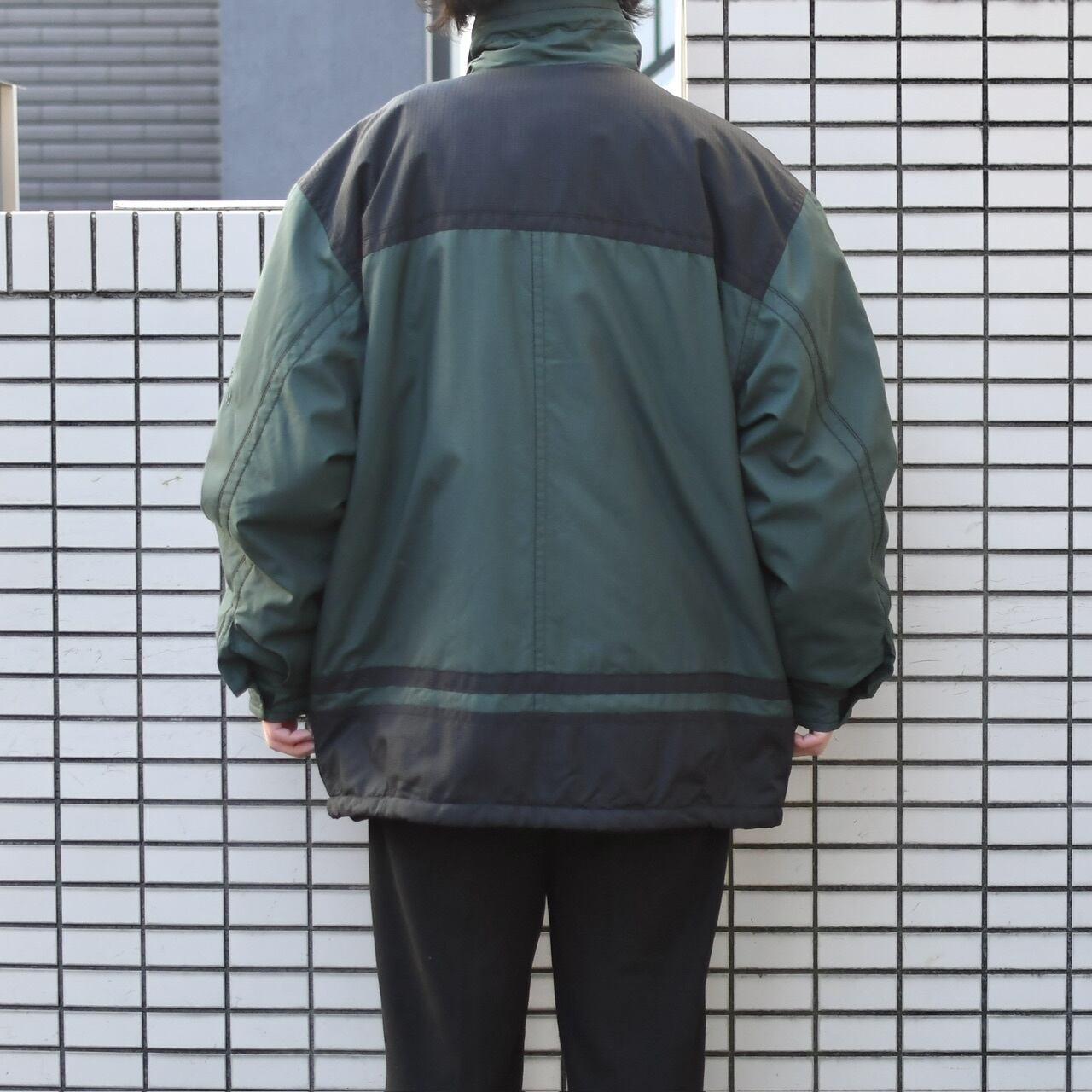 ミドル丈のナイロンジャケット。