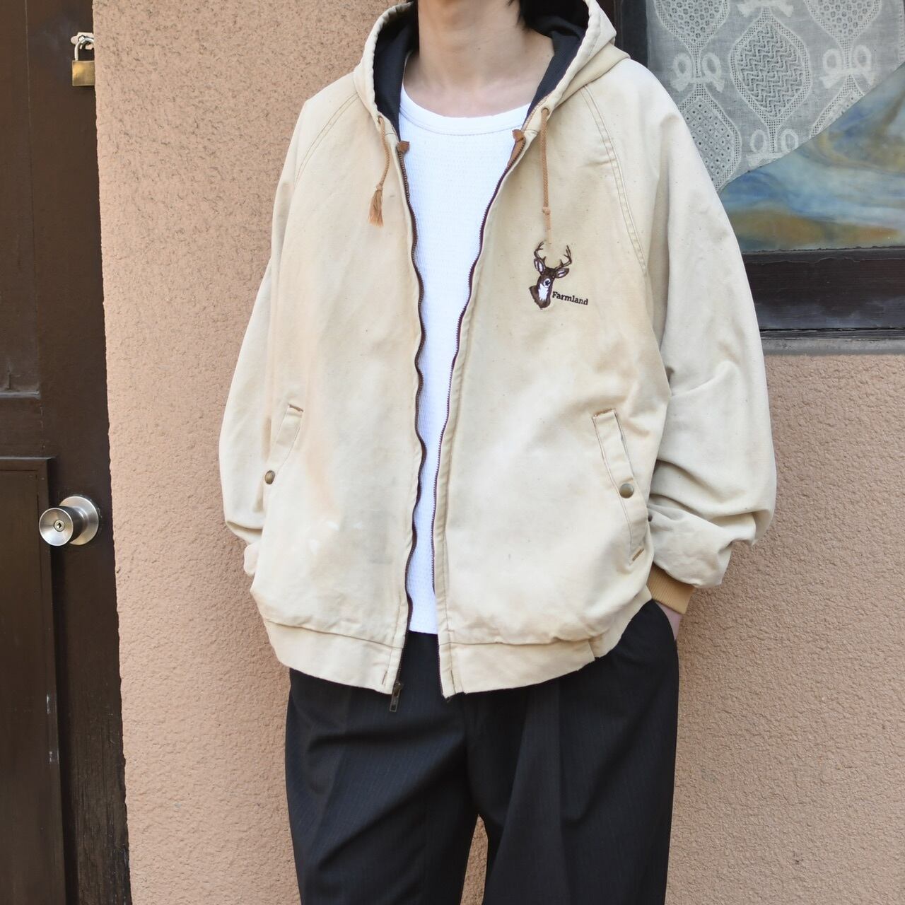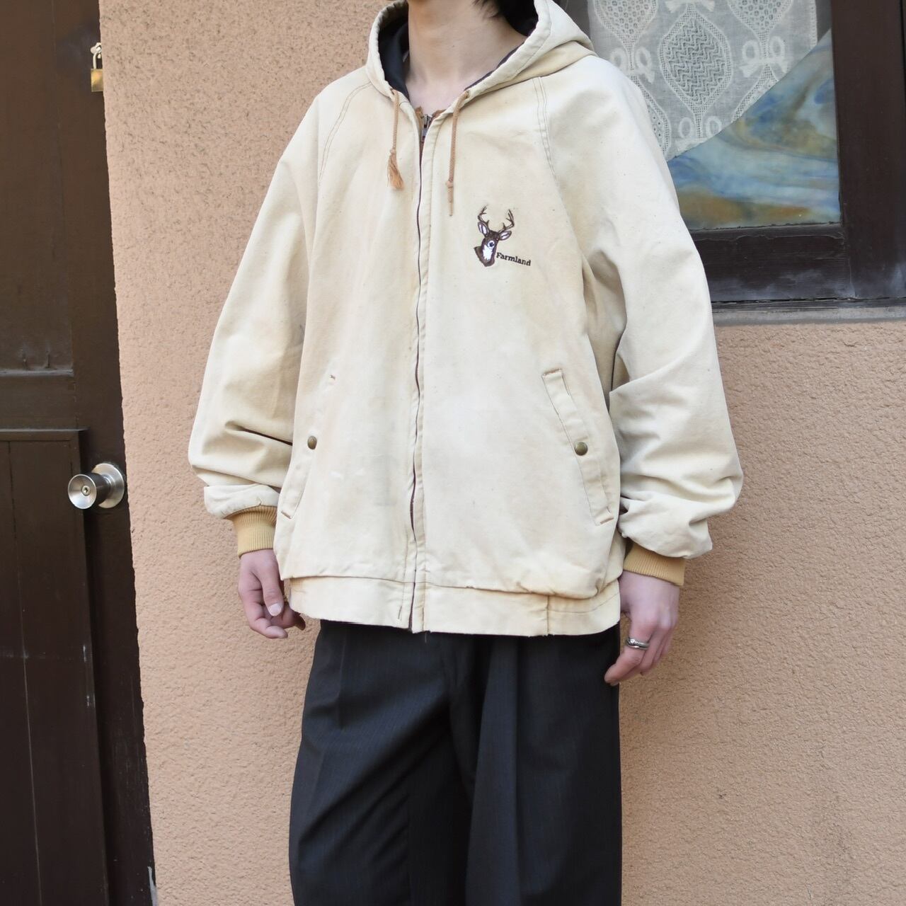 deer embroidery fade duck jacket