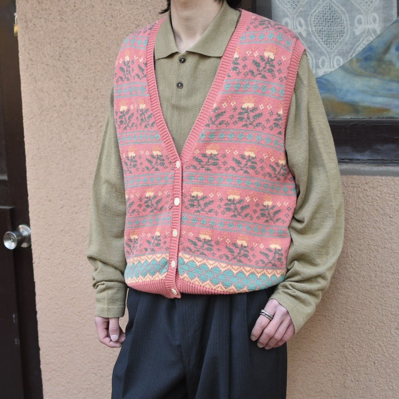 メルヘンじゃない花柄ピンクニットベスト。
