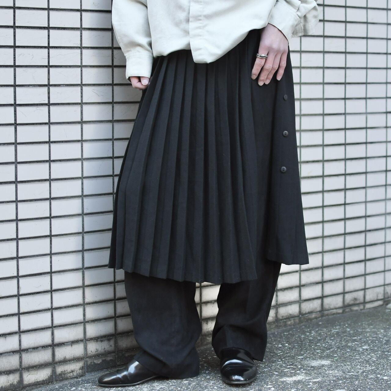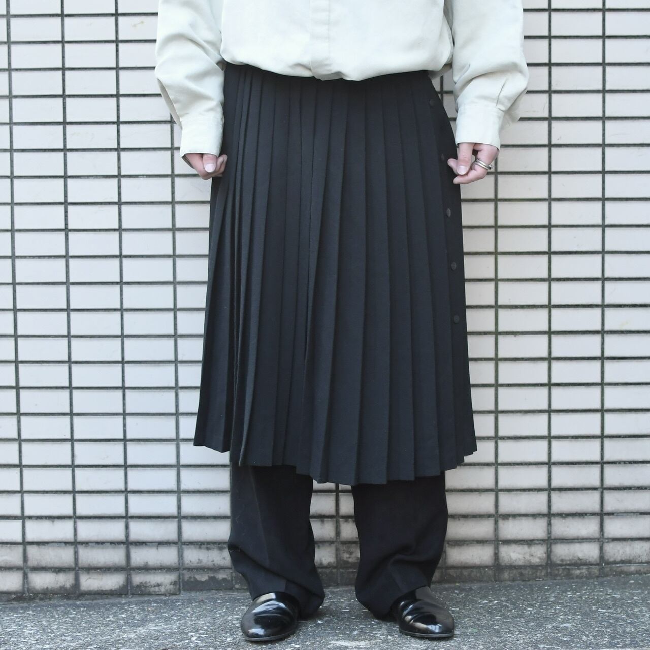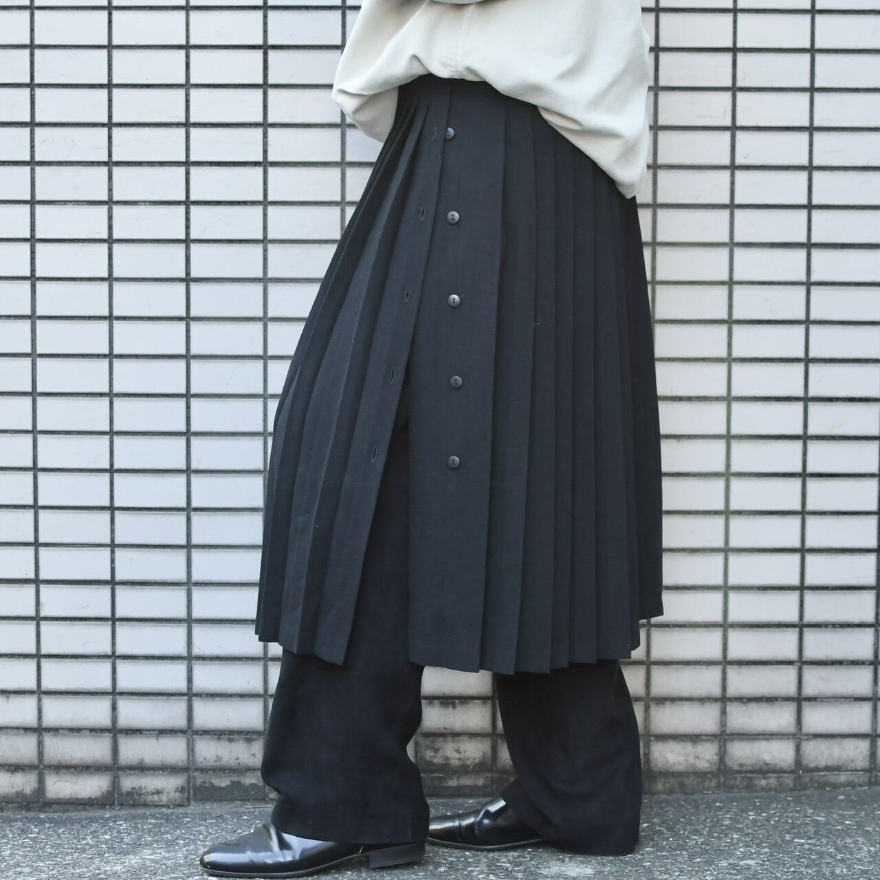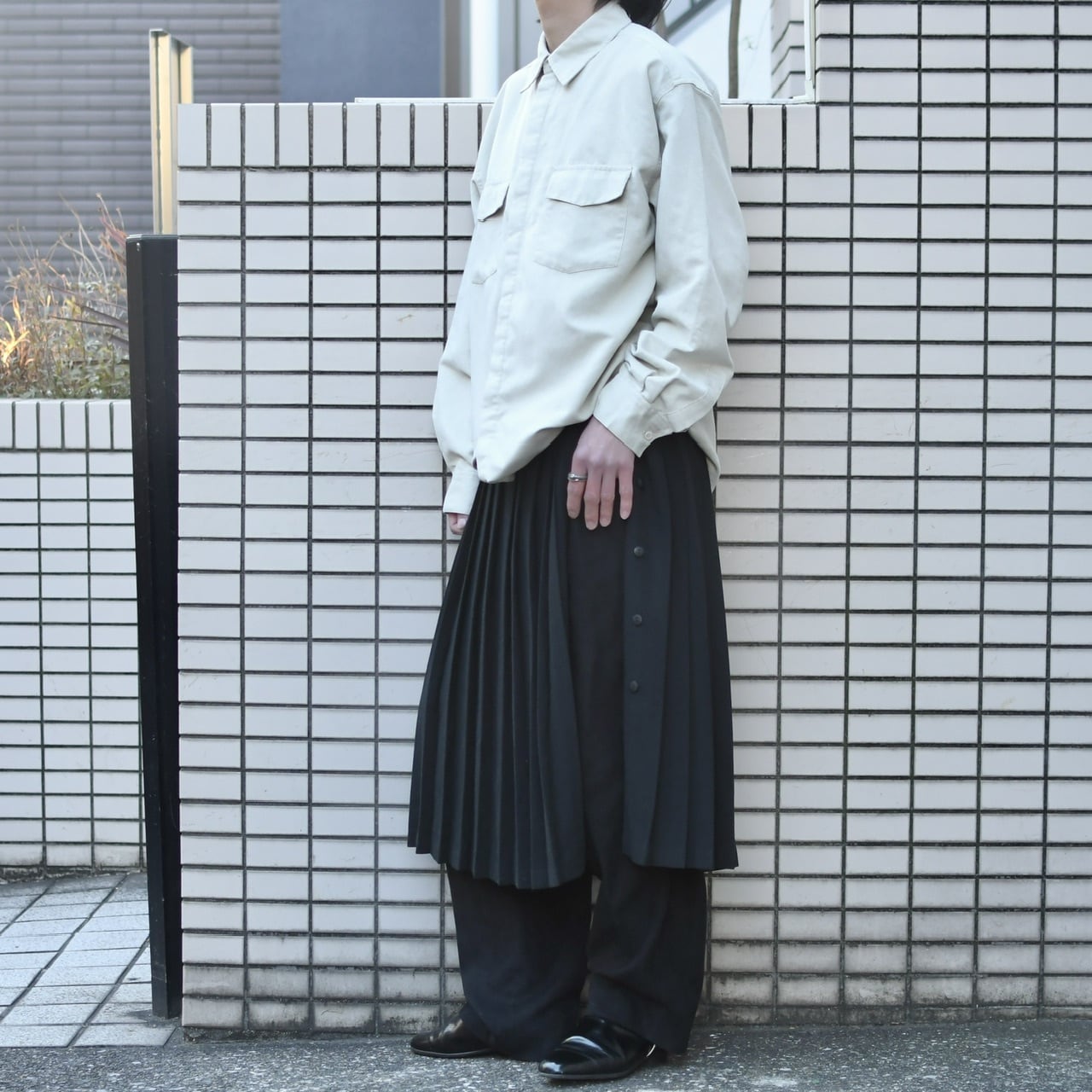 サイドのボタンを開けて総柄のパンツを見せたり、