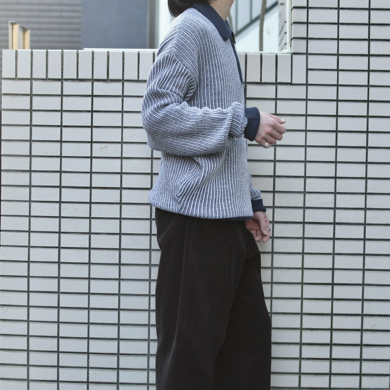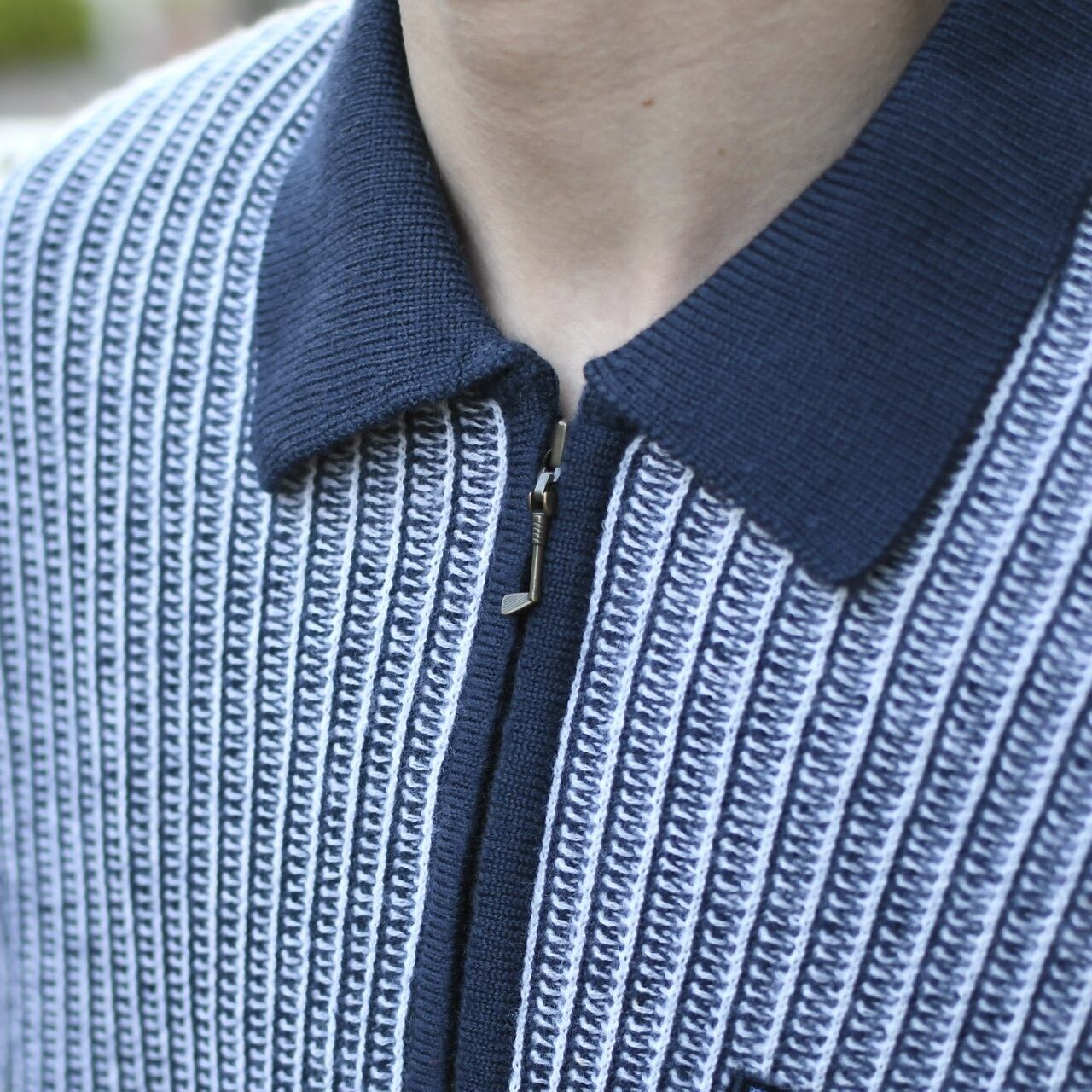 ニットポロの上品さとハーフジップの