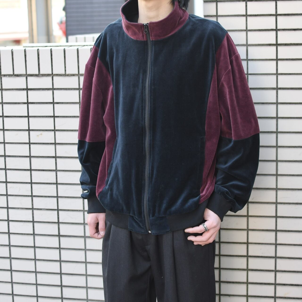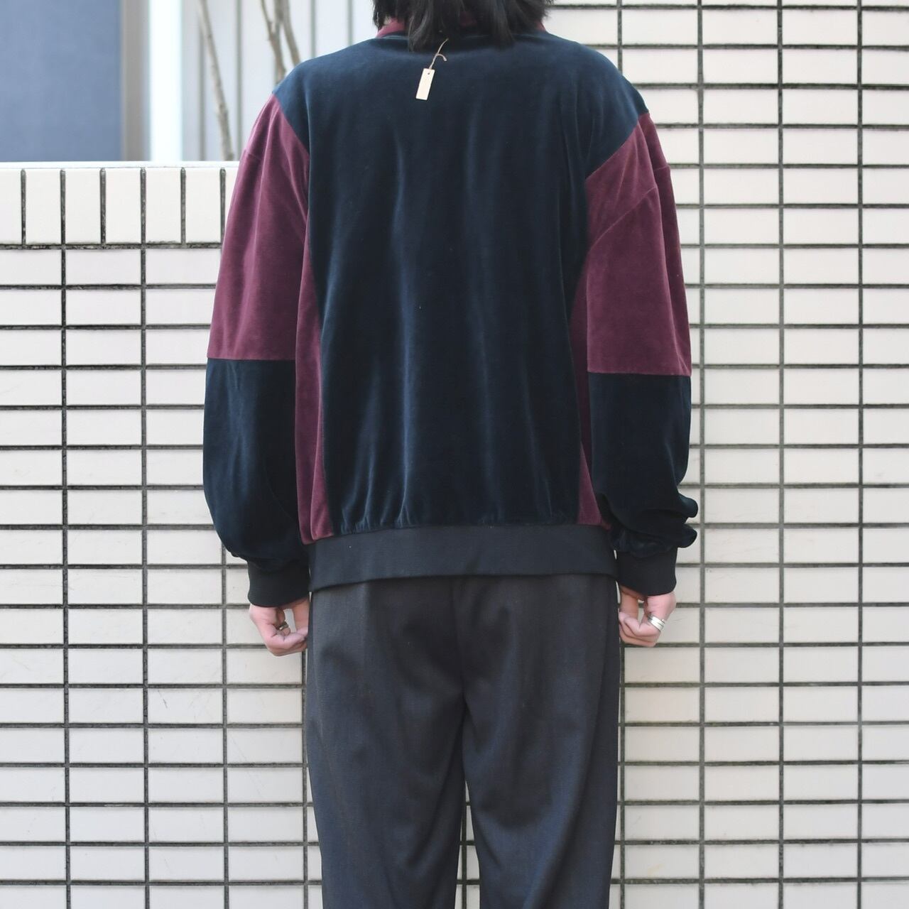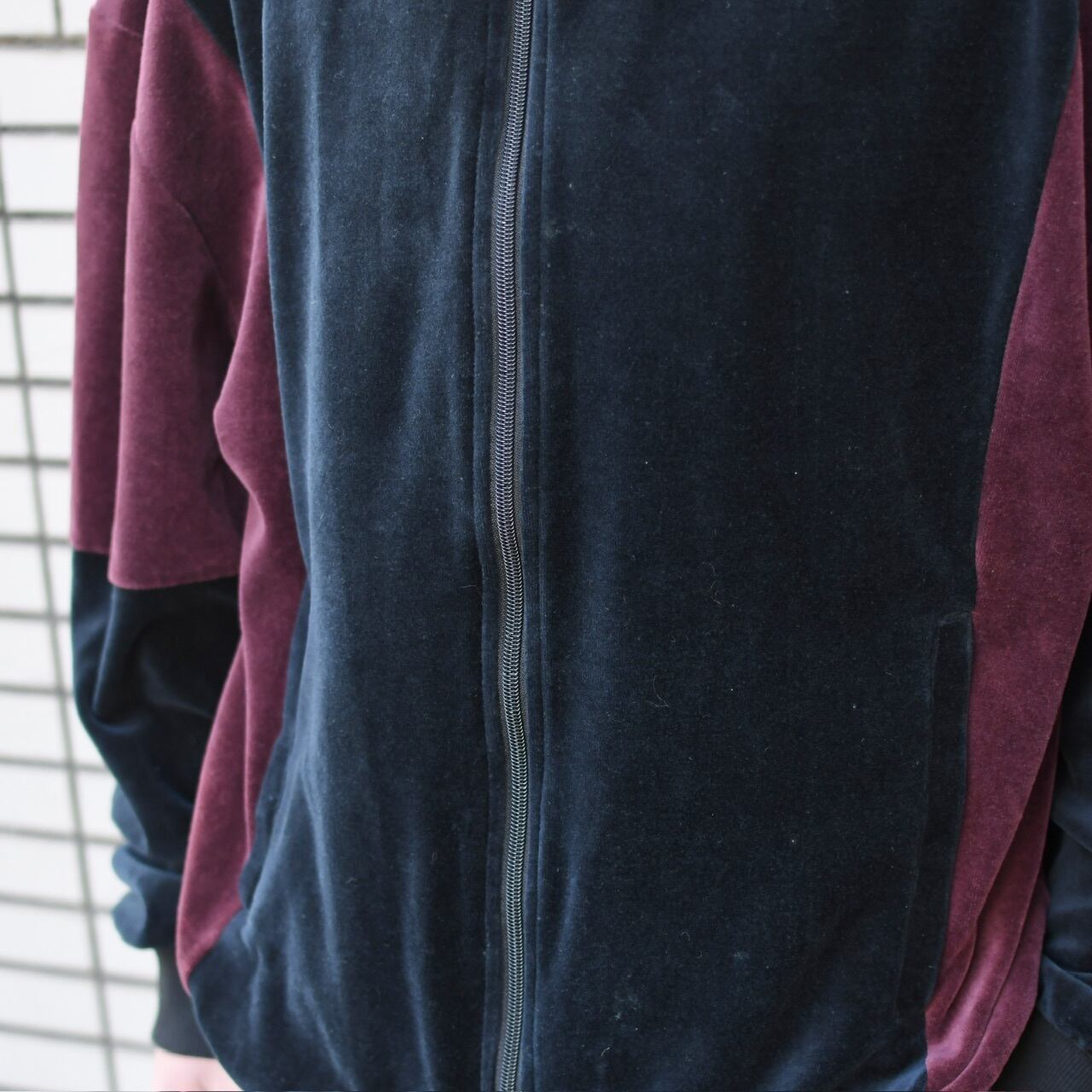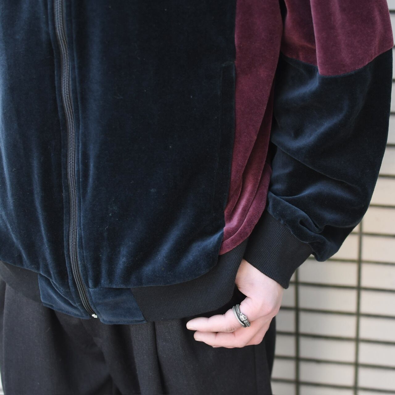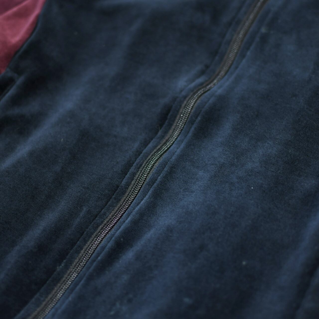 ベロアの上品な生地を使い、ボルドー×ネイビーの