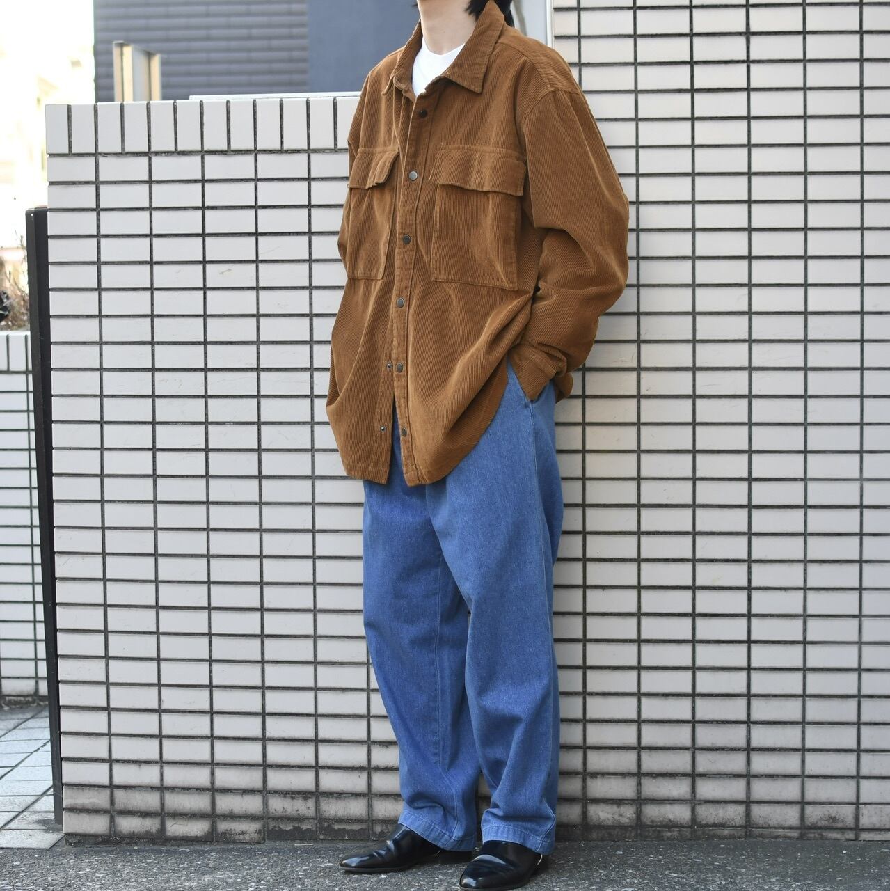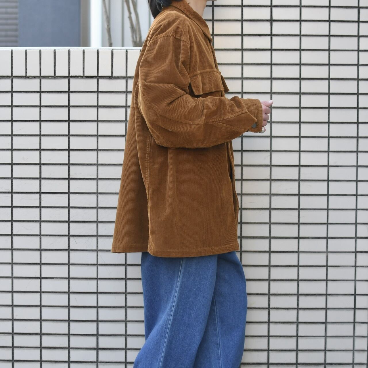 色々なトップスの上からがばっと着たいアイテムです。