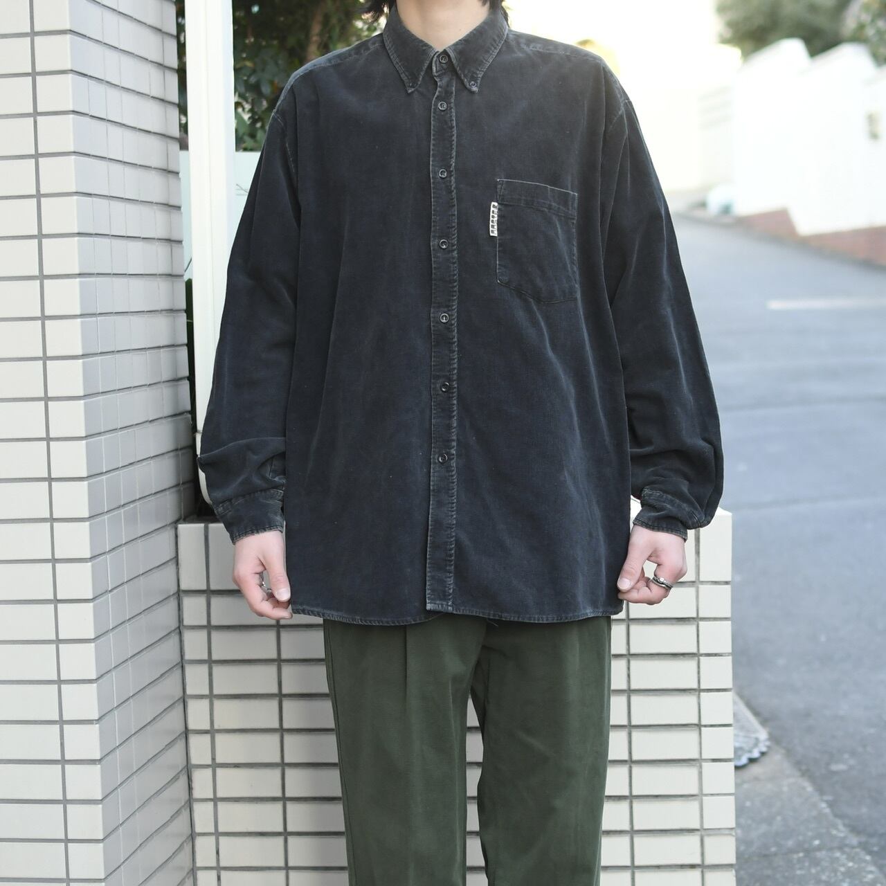 fade black corduroy shirt