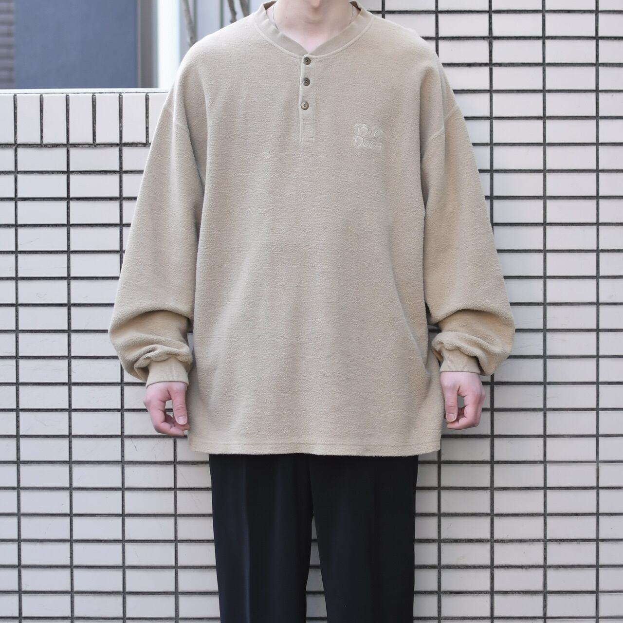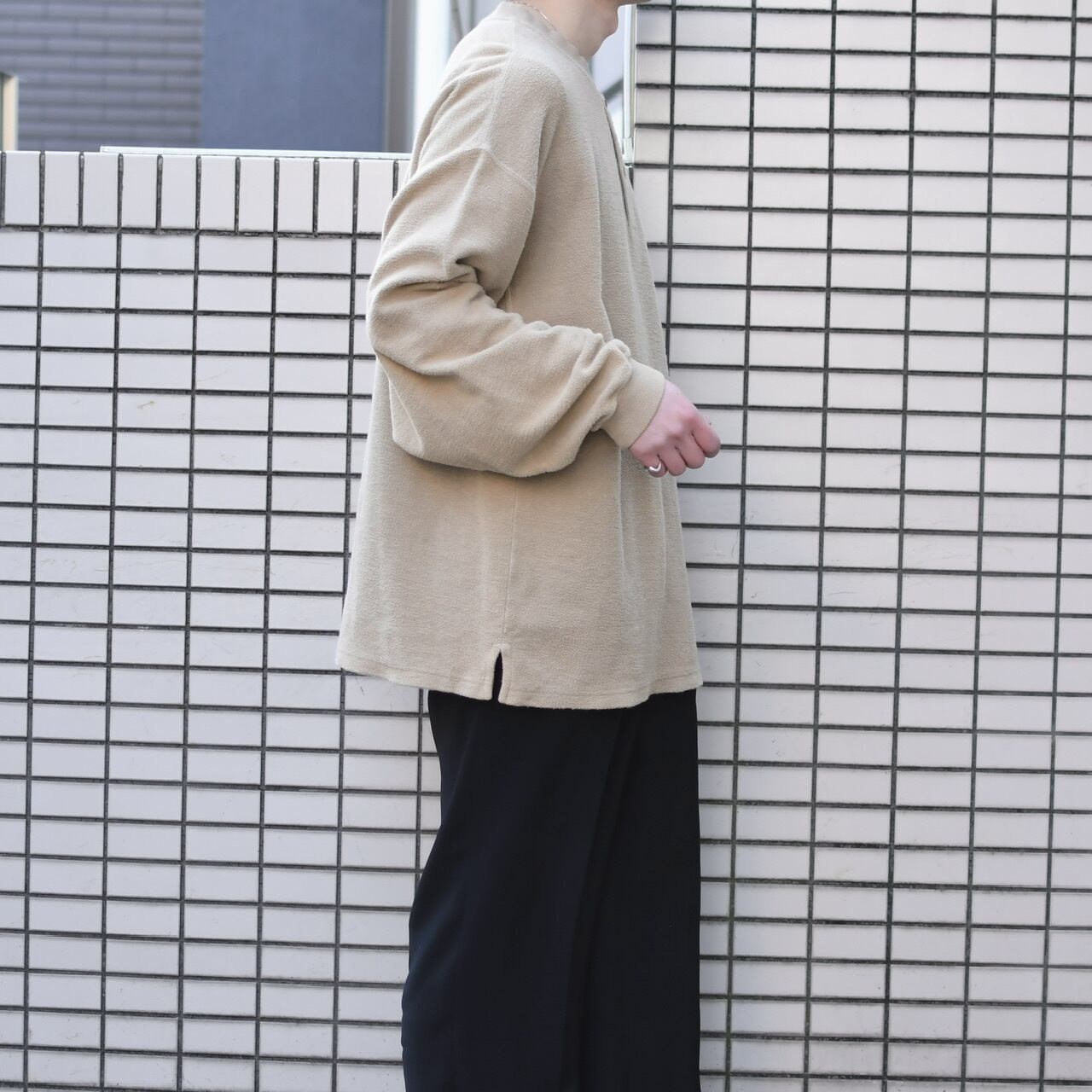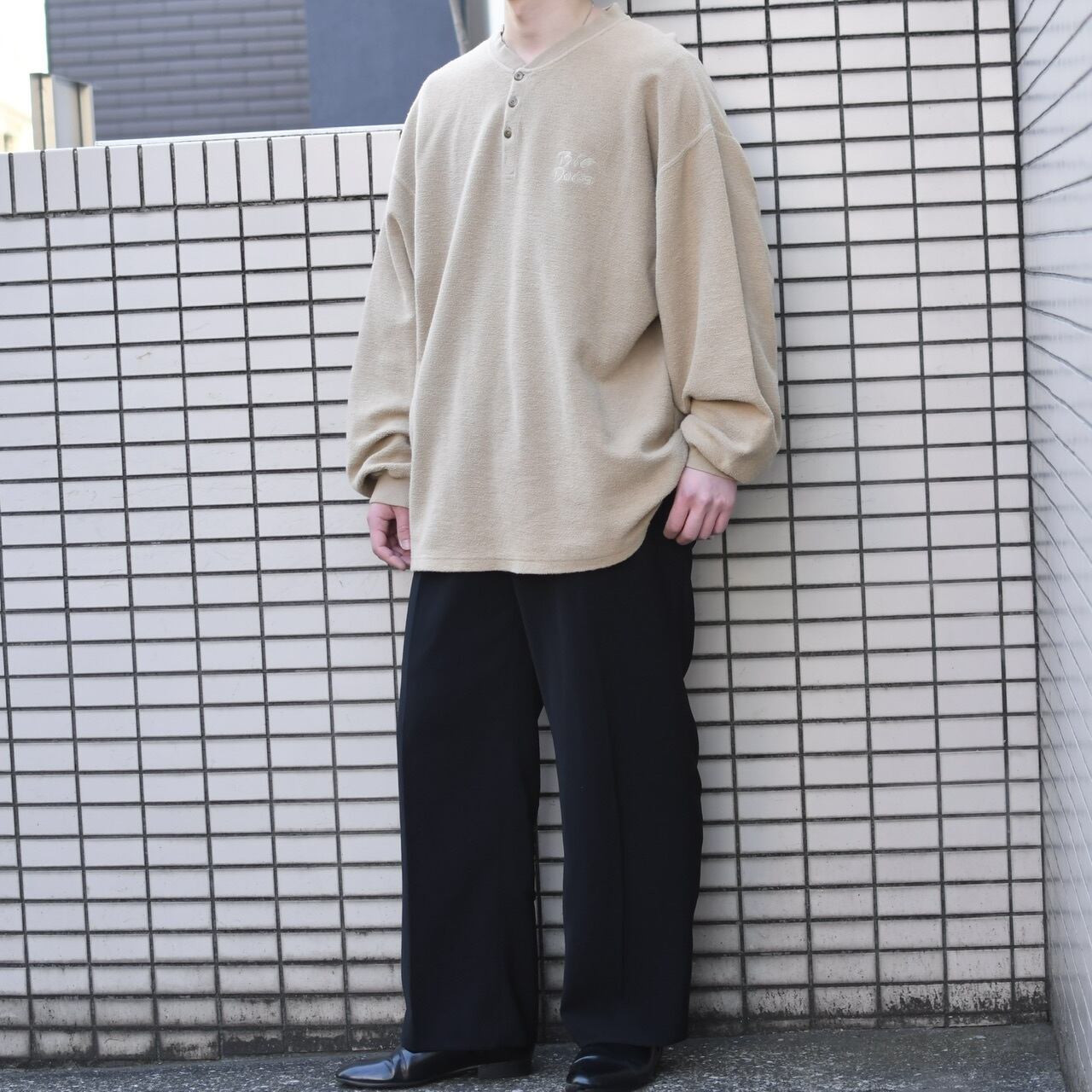 首元はヘンリーネック、そしてふわっとした