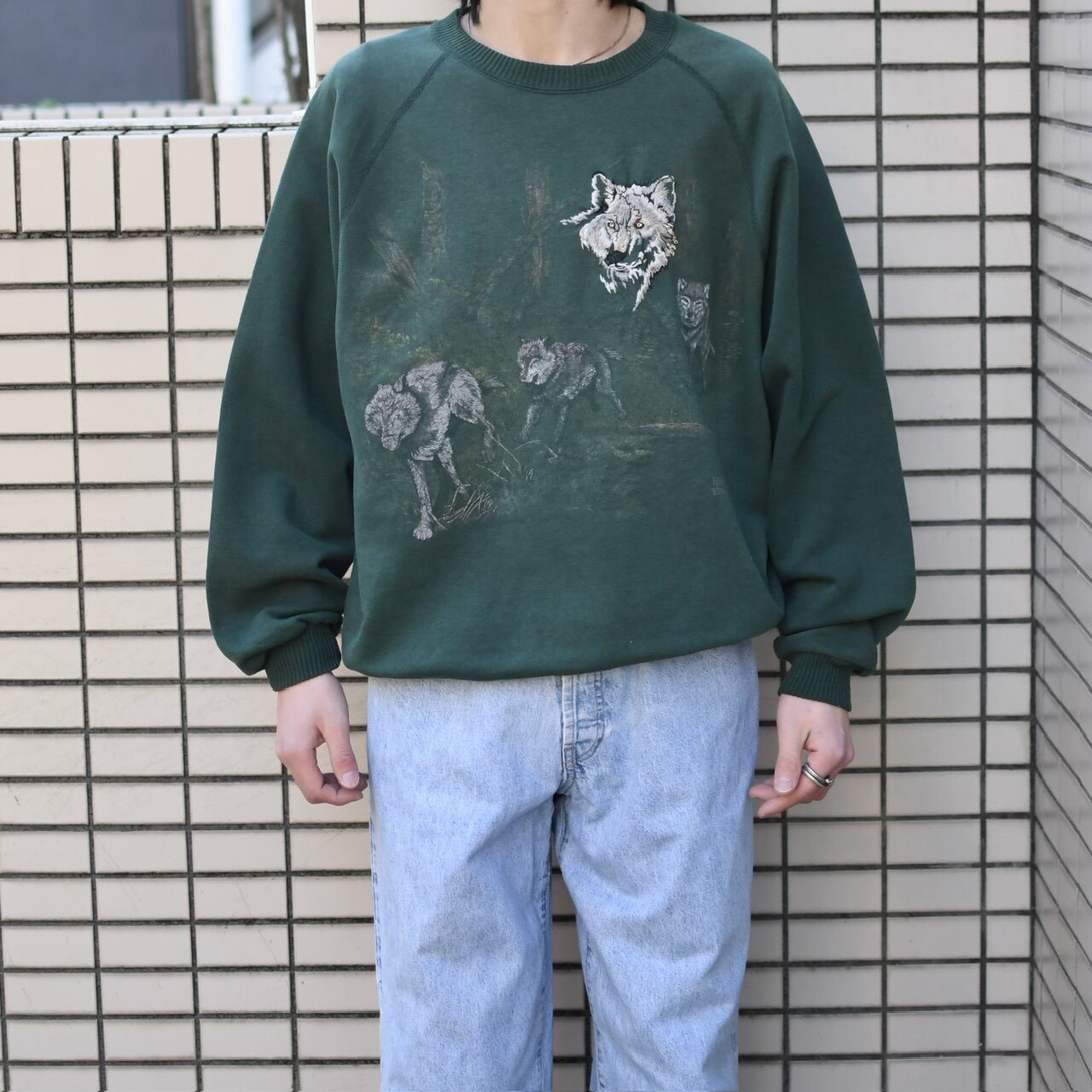 wolf embroidery x print sweat
