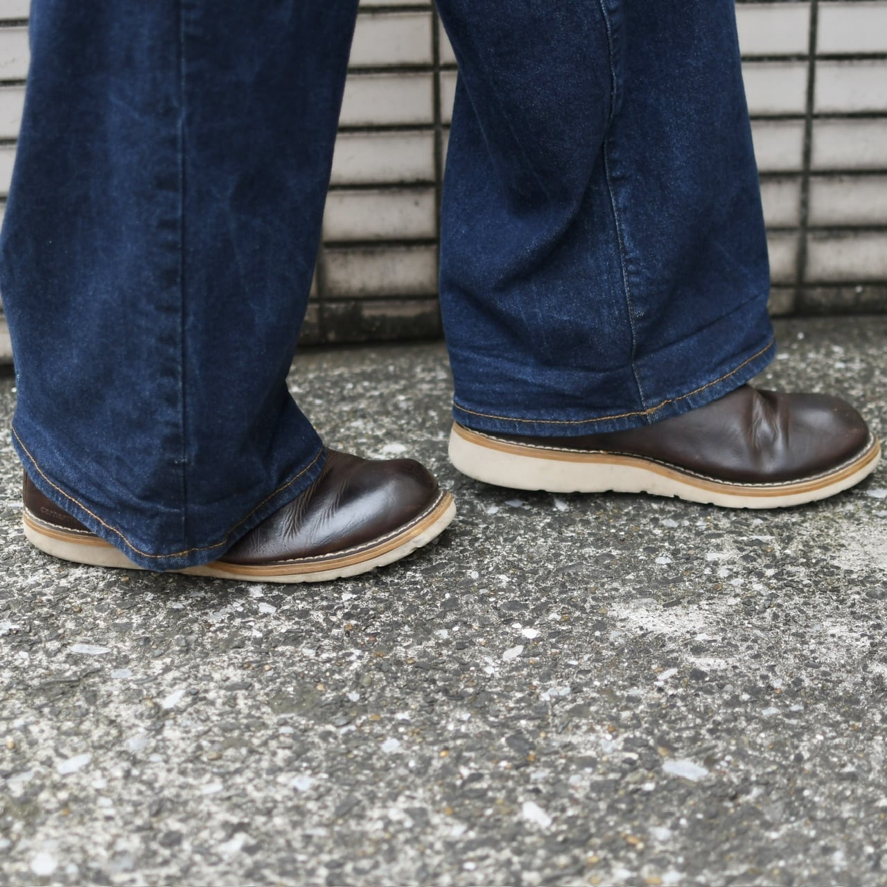 ぼてっとしたフォルムは、ワイドなパンツとの
