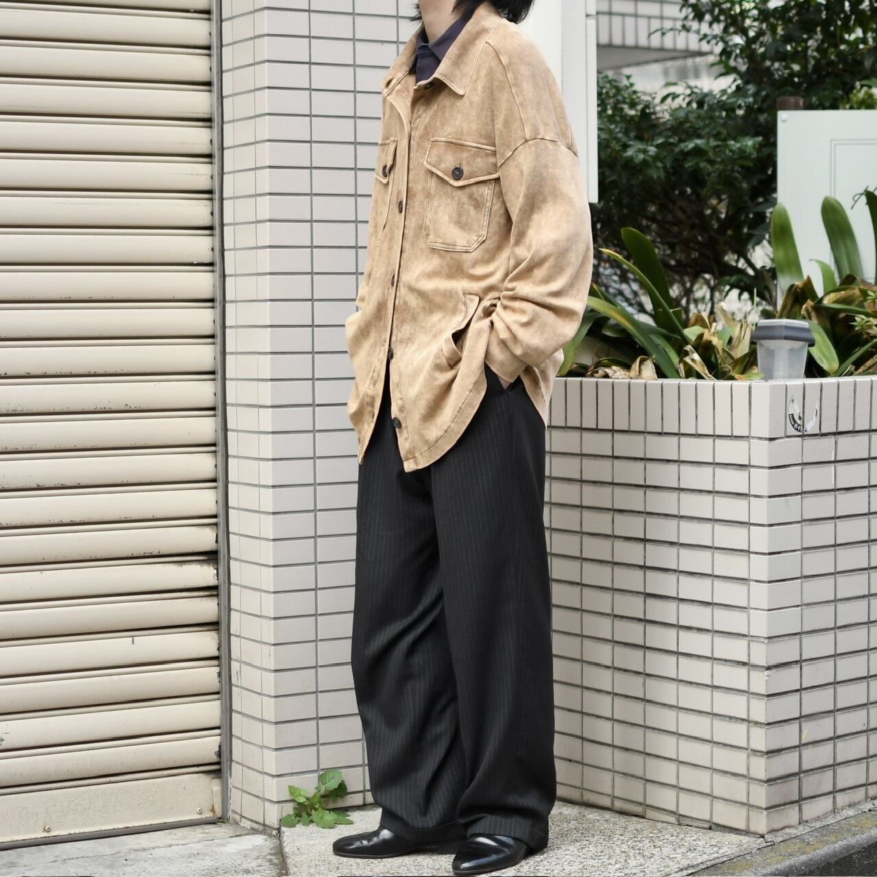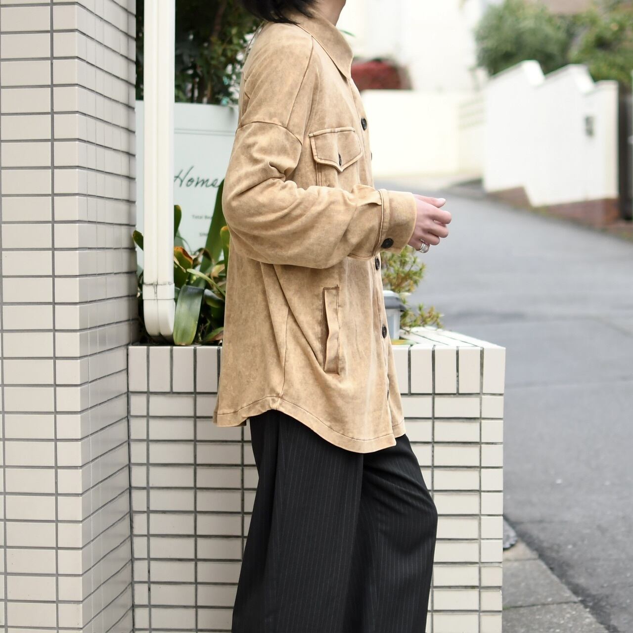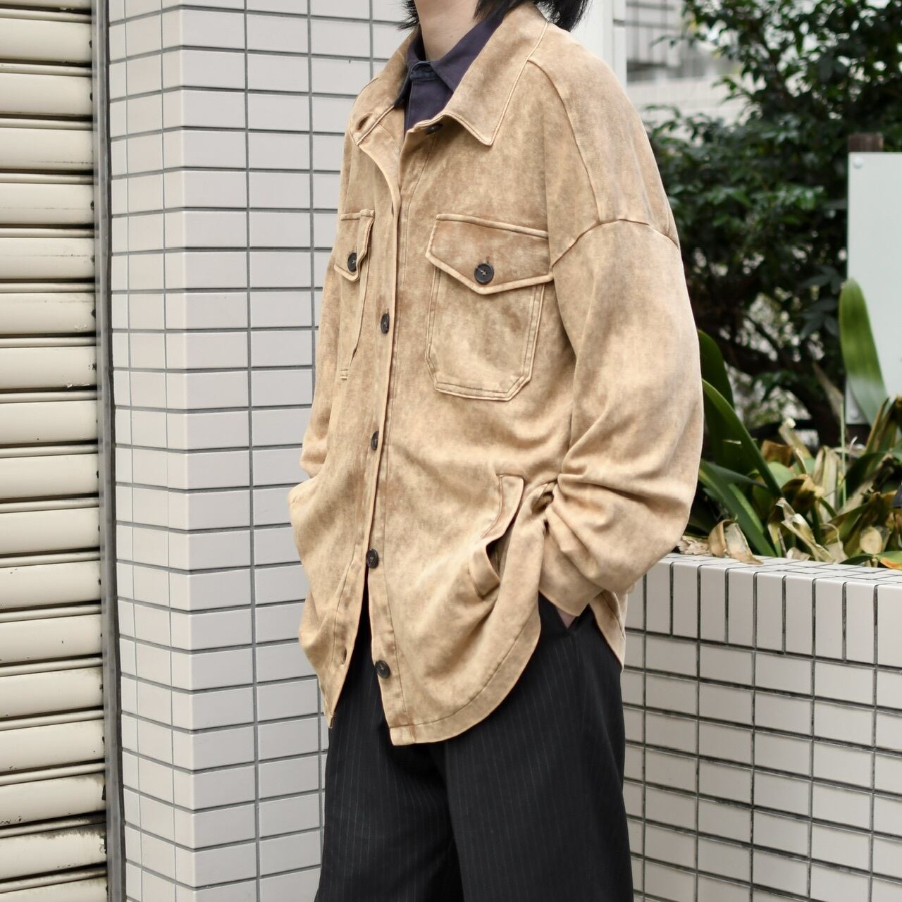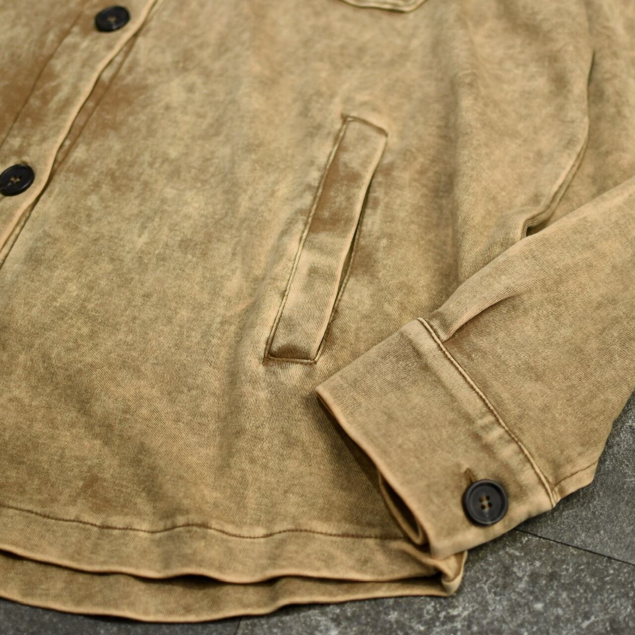 裾は緩くラウンドし、トラッカージャケットの中でも