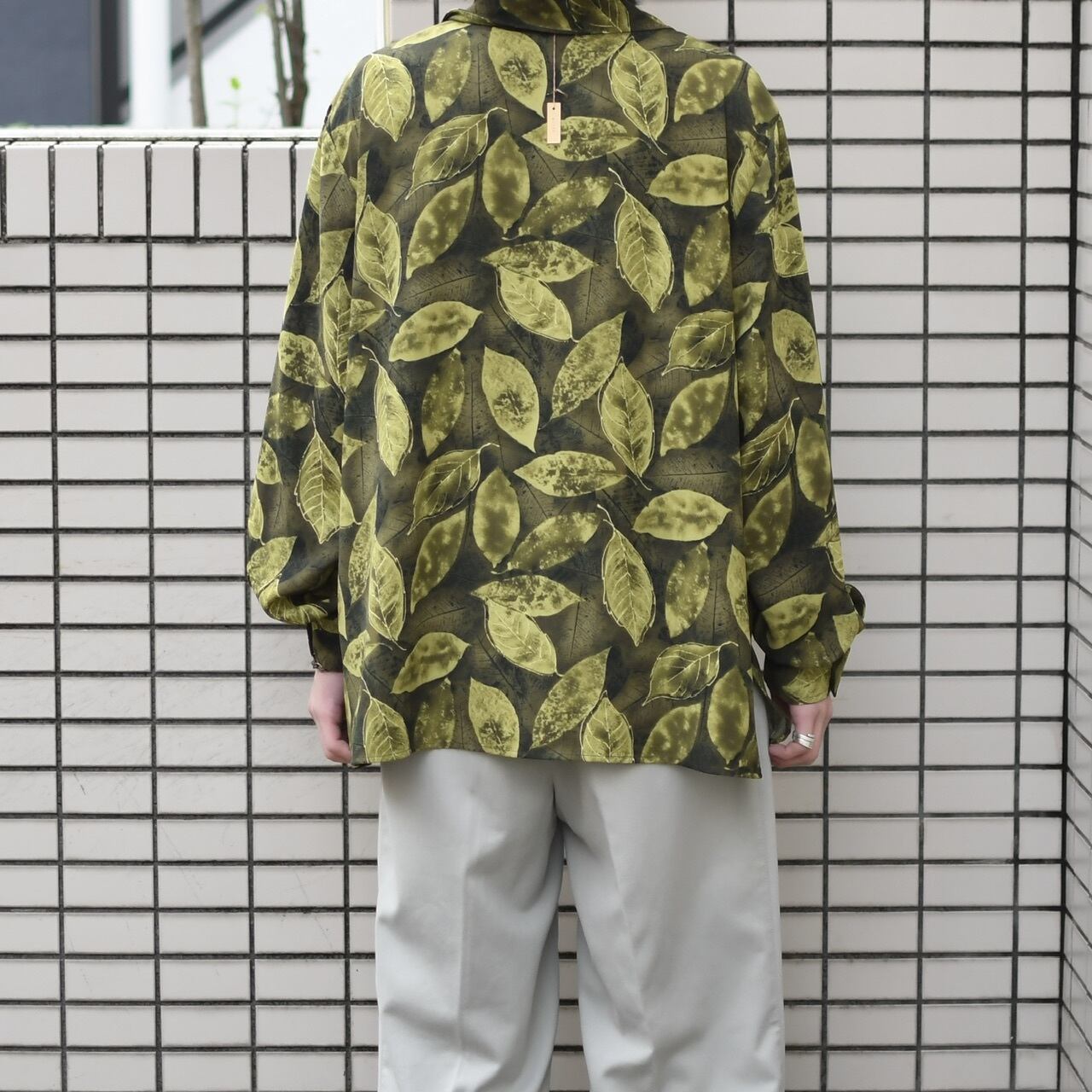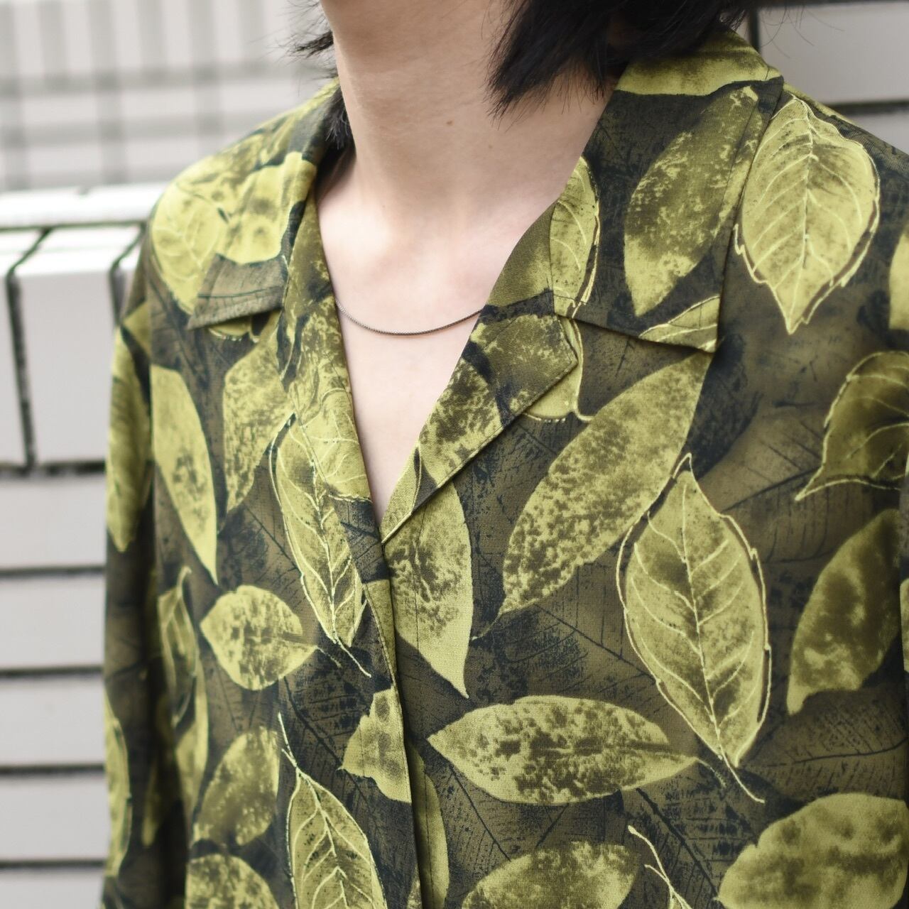 ボタニカル柄と、オープンカラーの
