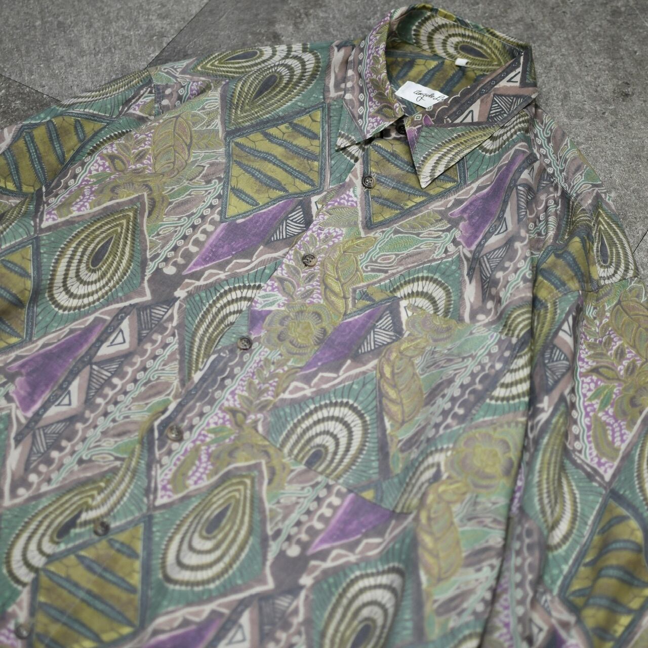 ボタニカル柄を主とした総柄シャツ。