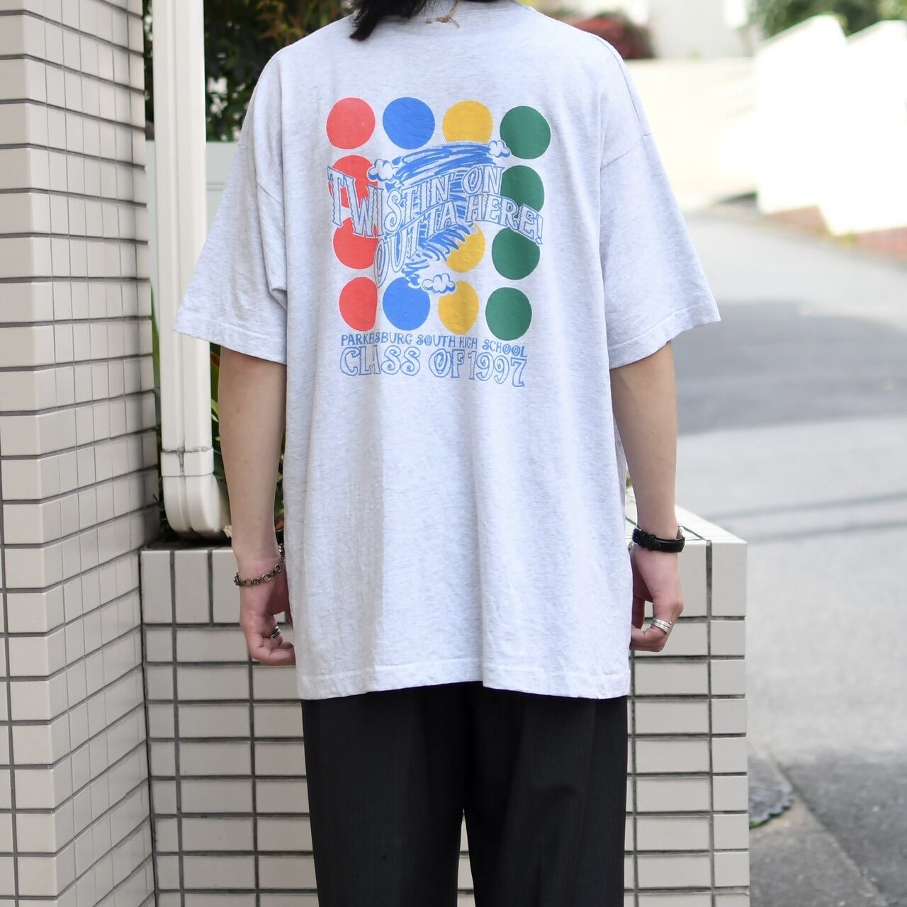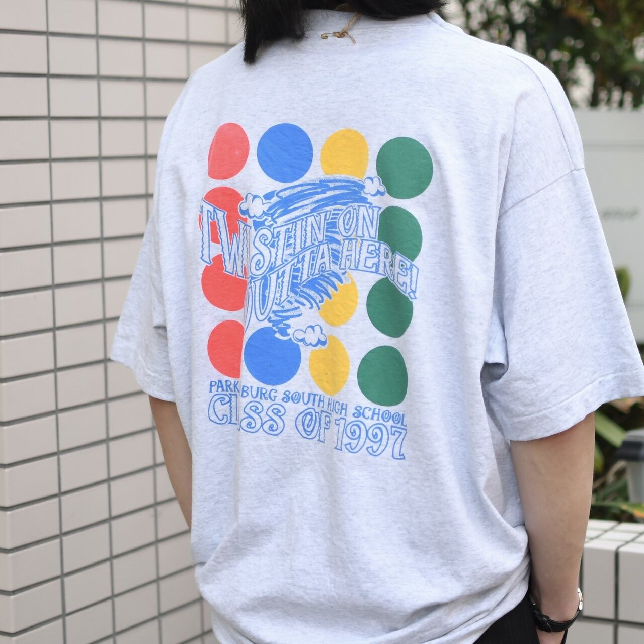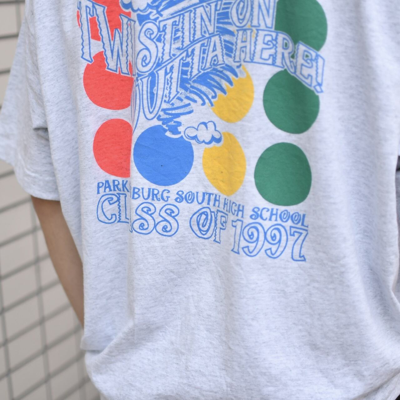 back print, "TWISTIN' ON OUTTA HERE," is a