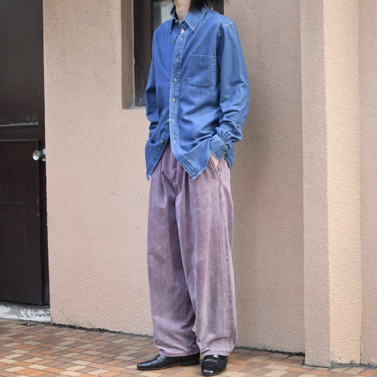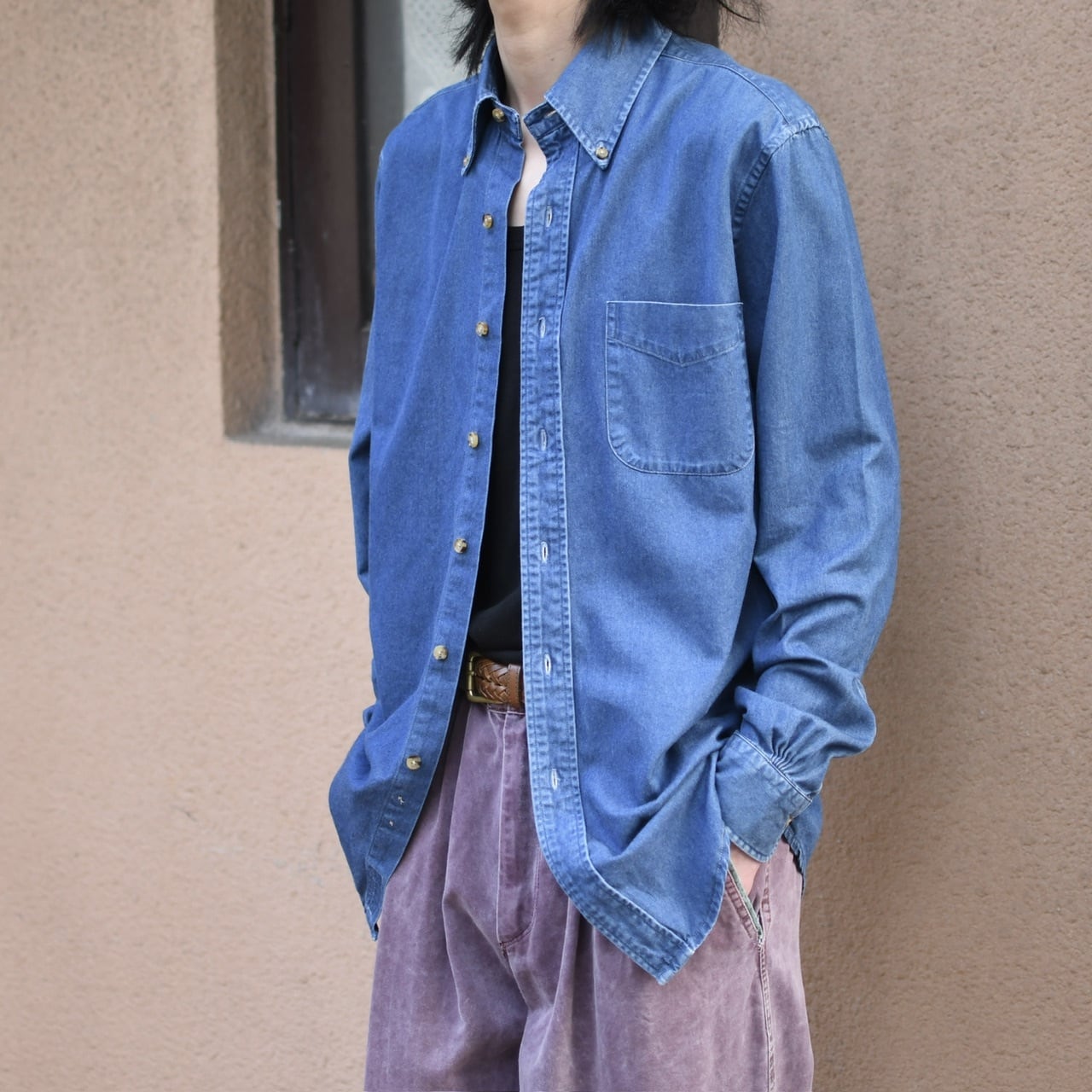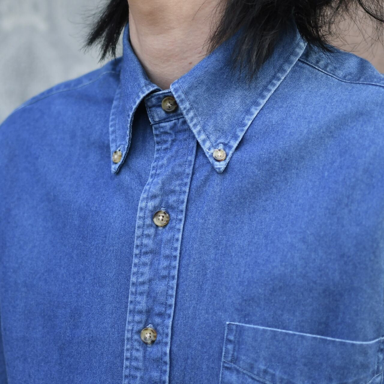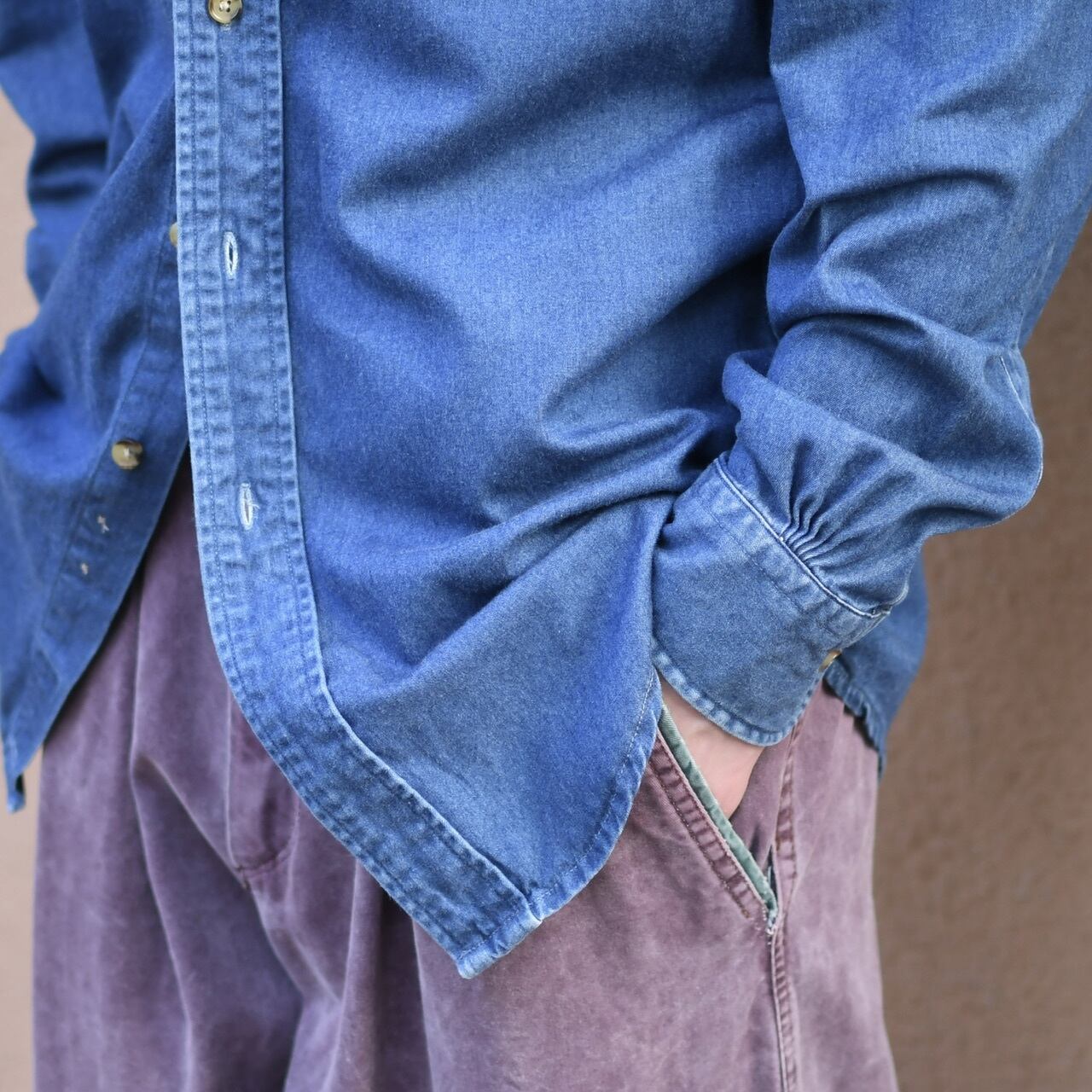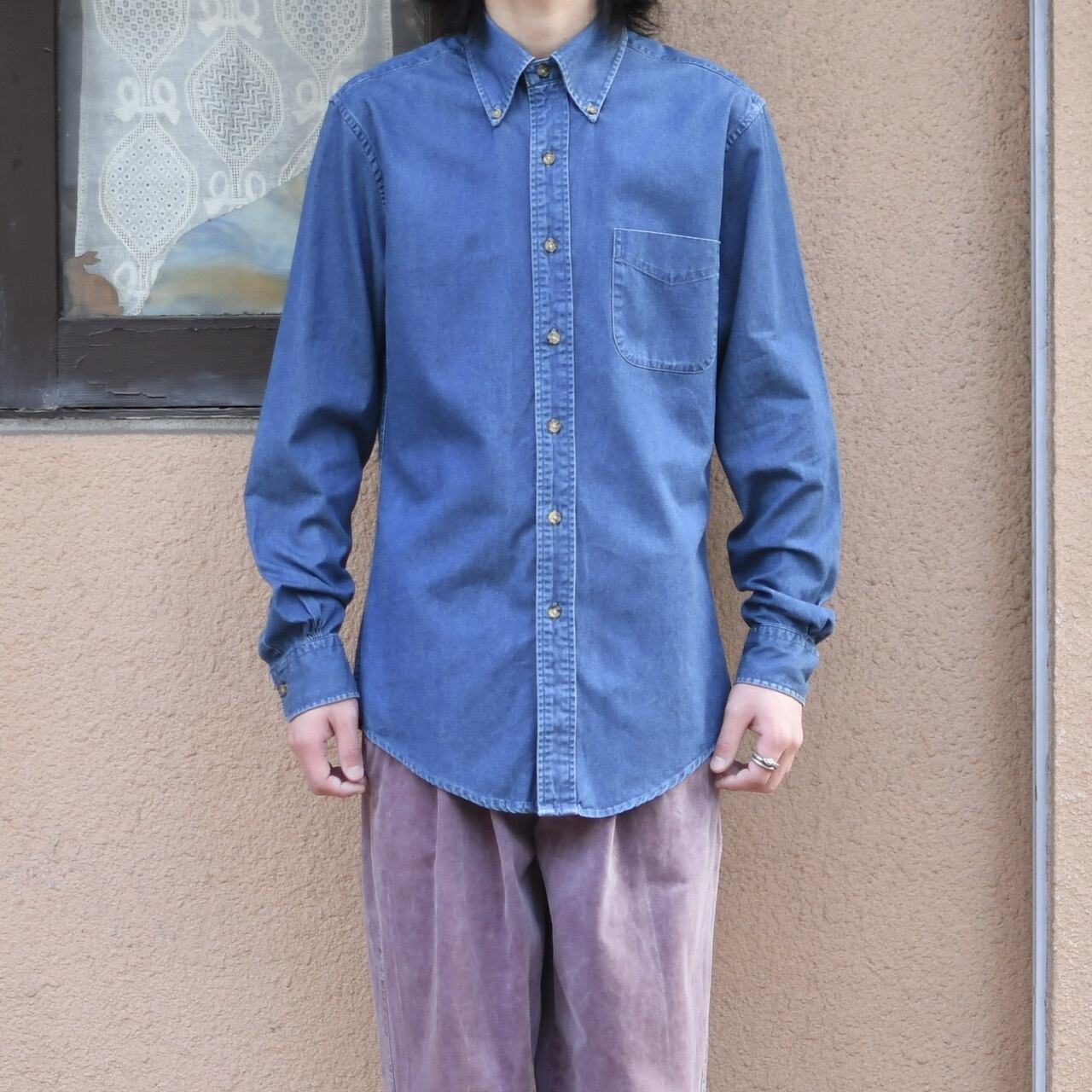 時折見掛ける、デニムで仕立てられたドレスシャツ。