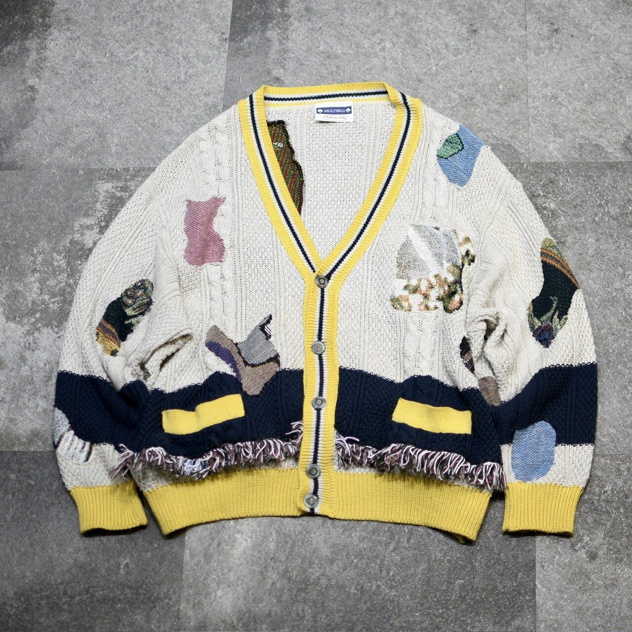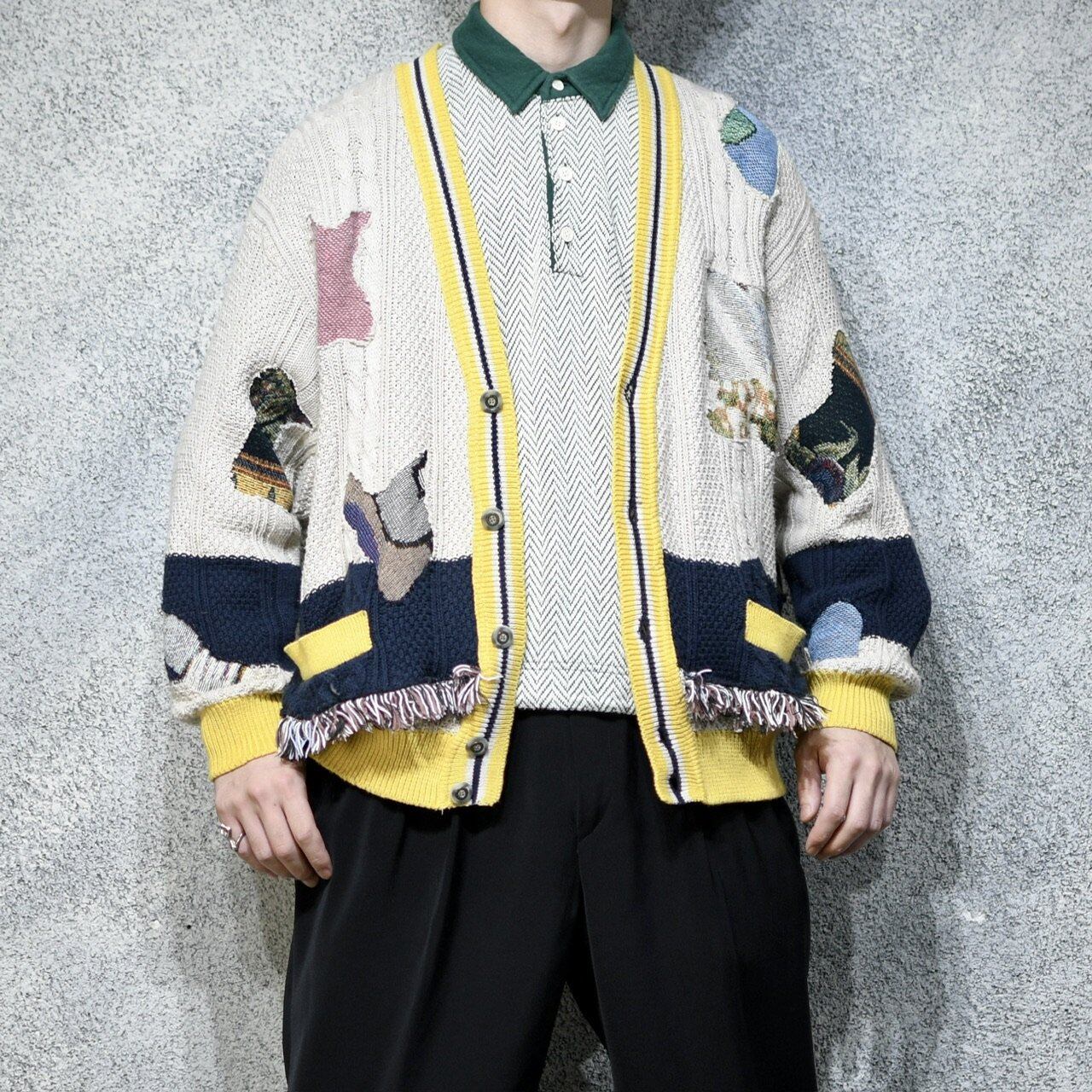様々なラグをカーディガンへ、つぎはぎ状に
