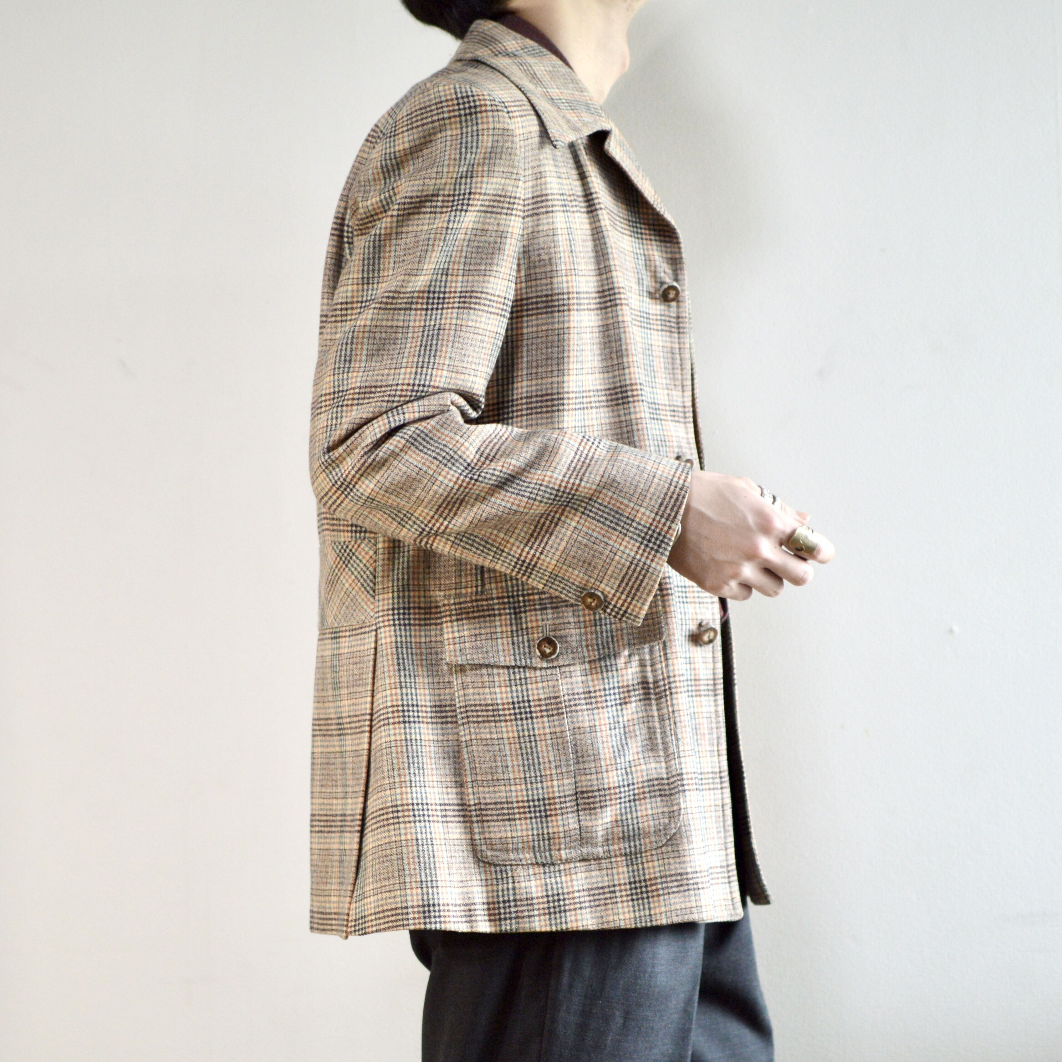 70's plaid tailored jacket