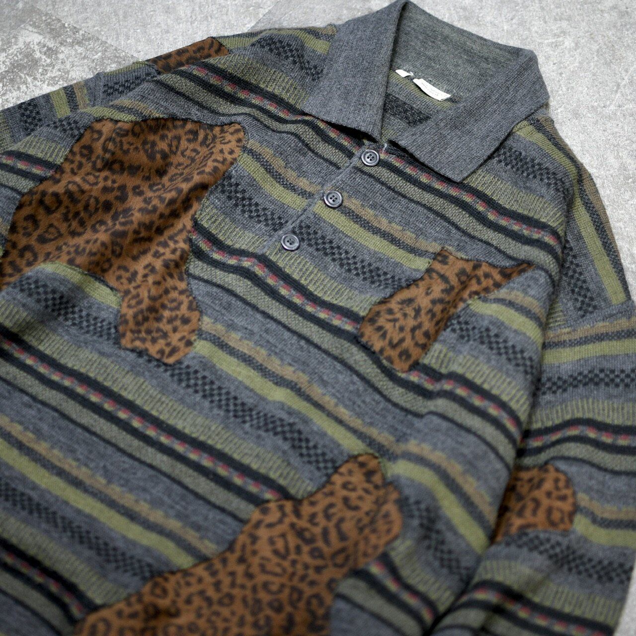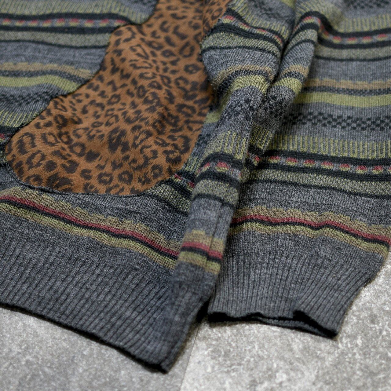 ニットポロにレオパード柄のフェイクスウェード