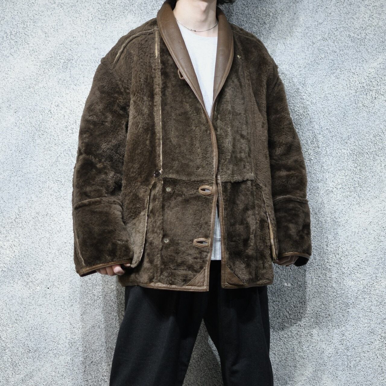shawl collar brown mouton jacket