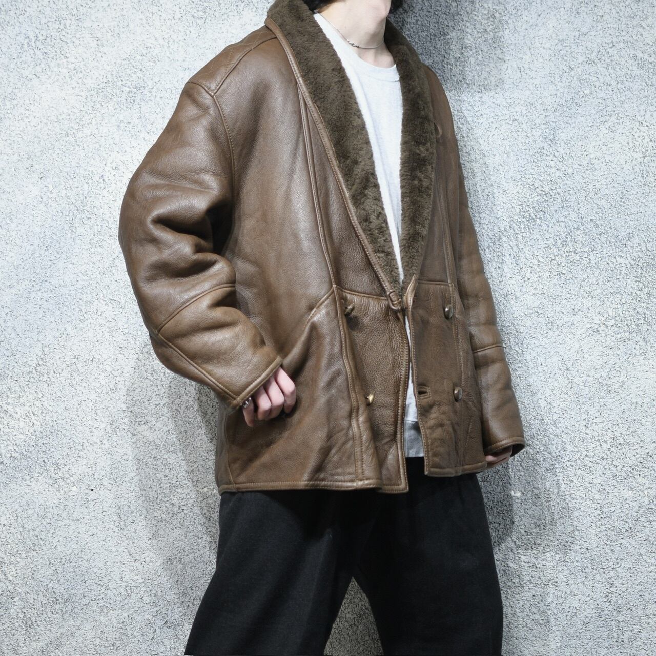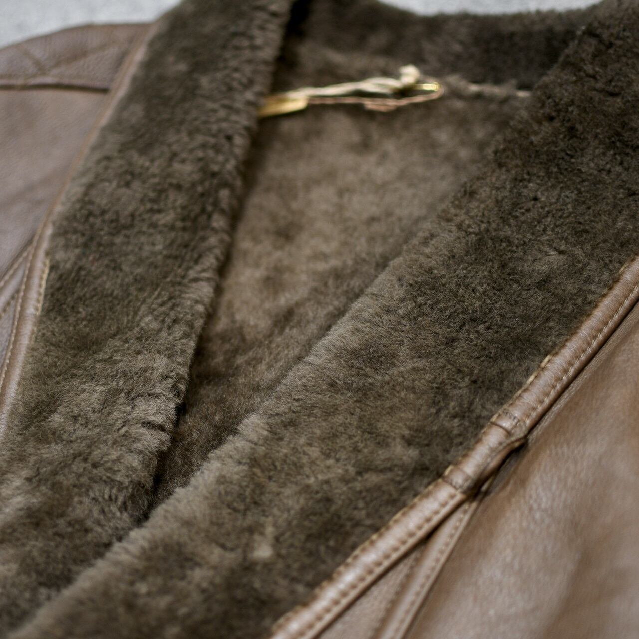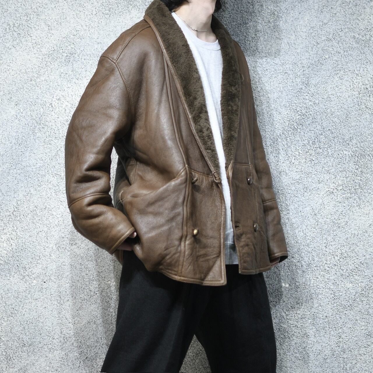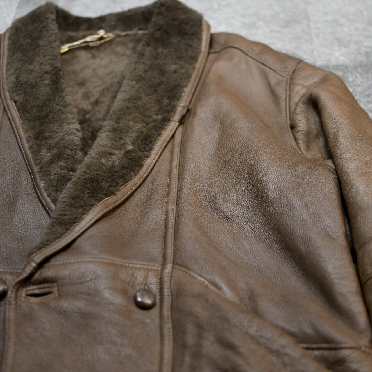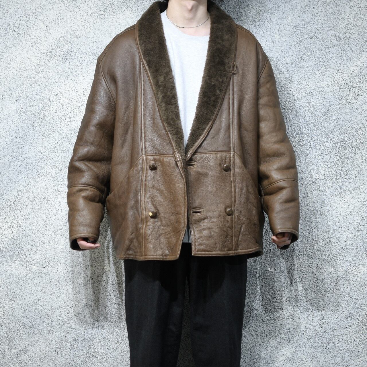 差別化出来るブラウンレザーで、ショールカラー、