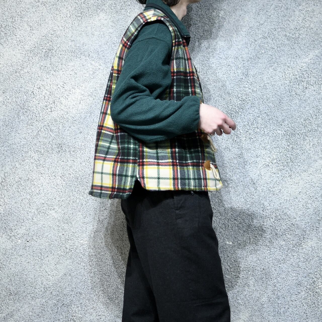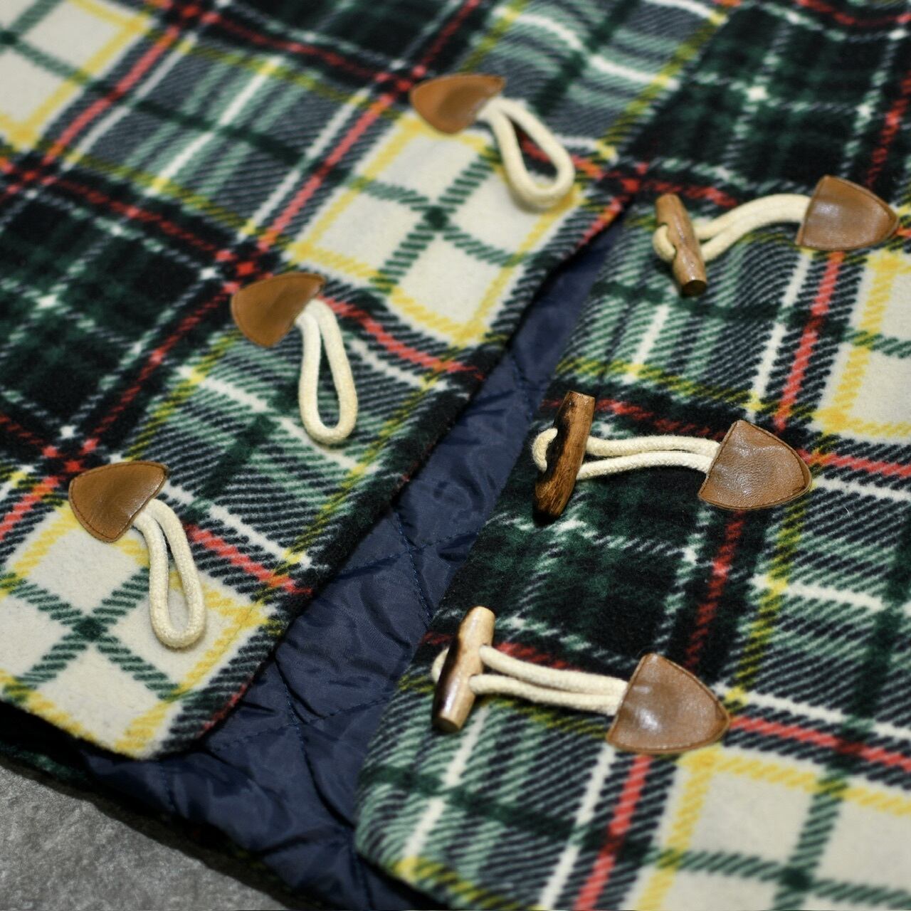 フリース生地にチェック柄、そしてトグルボタン。